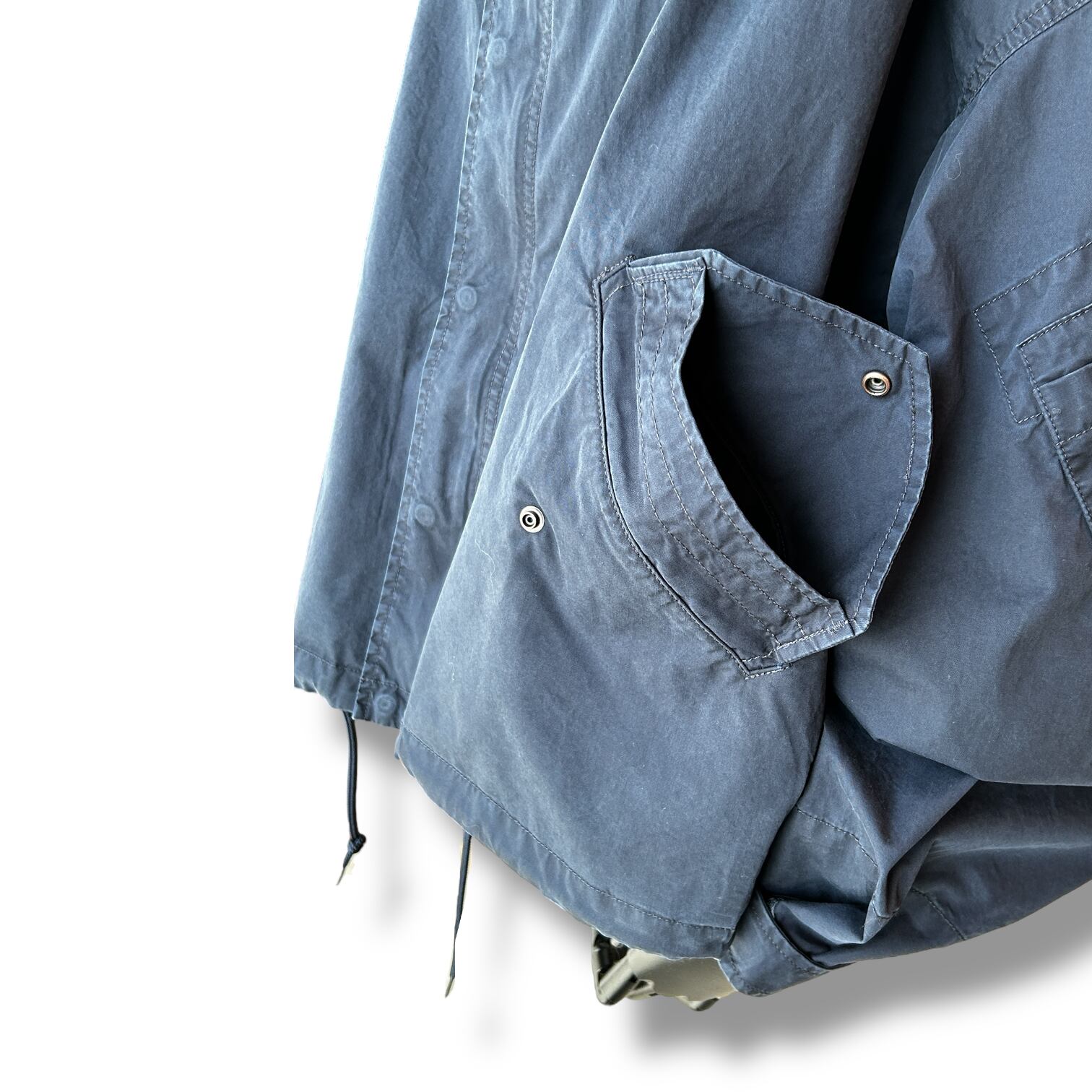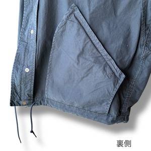 身幅はたっぷりと、アーム幅もゆとりあるパタンになっているので羽織った際の動作はしやすくバイク、自転車などの前傾姿勢に優れたシルエットです。