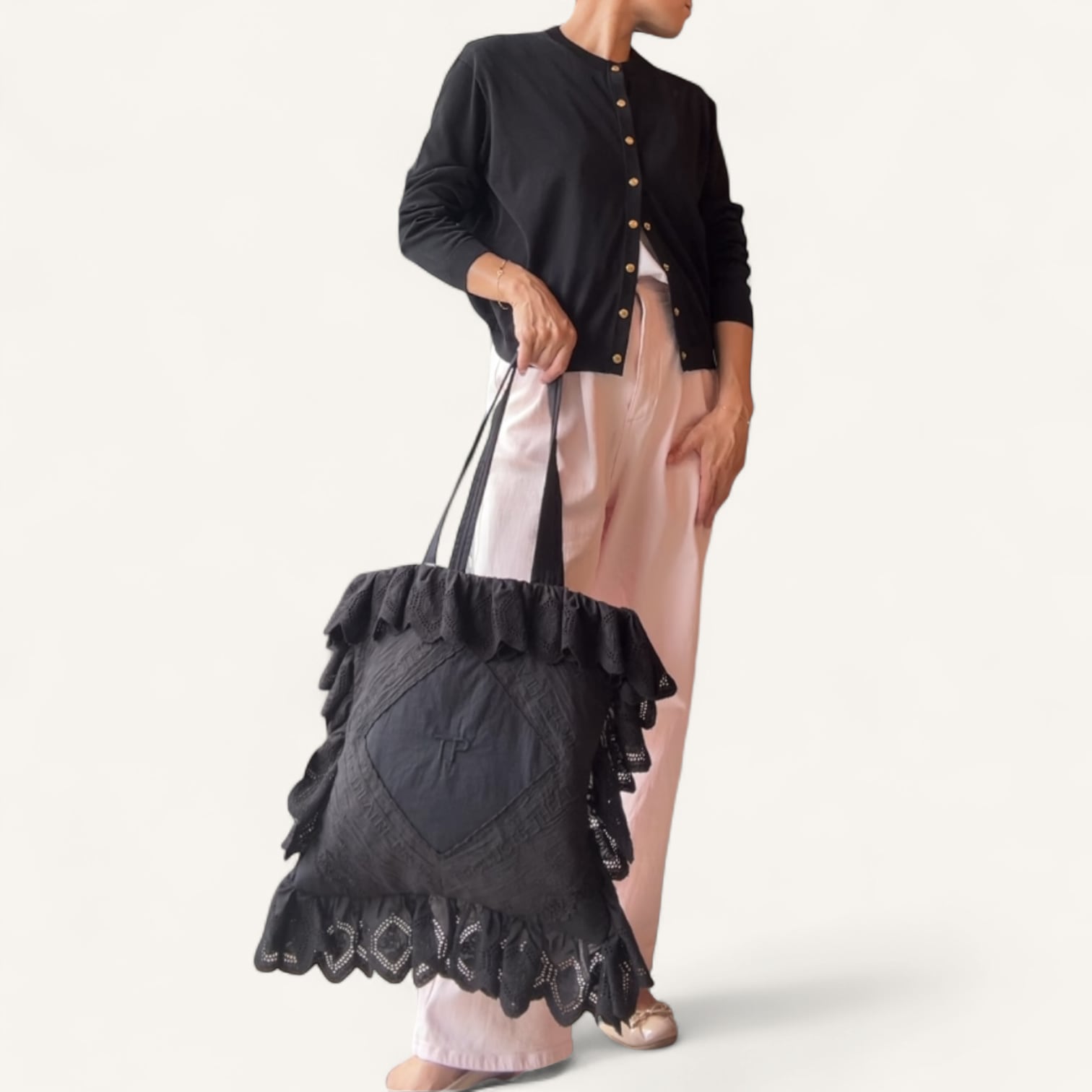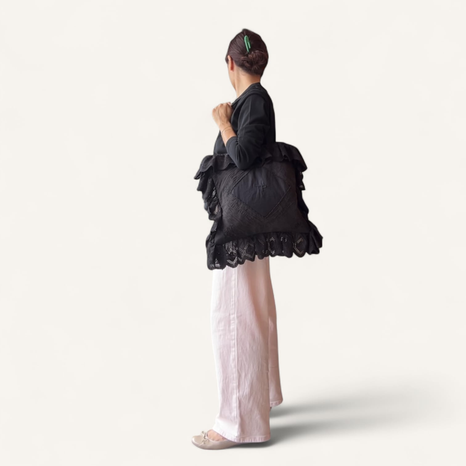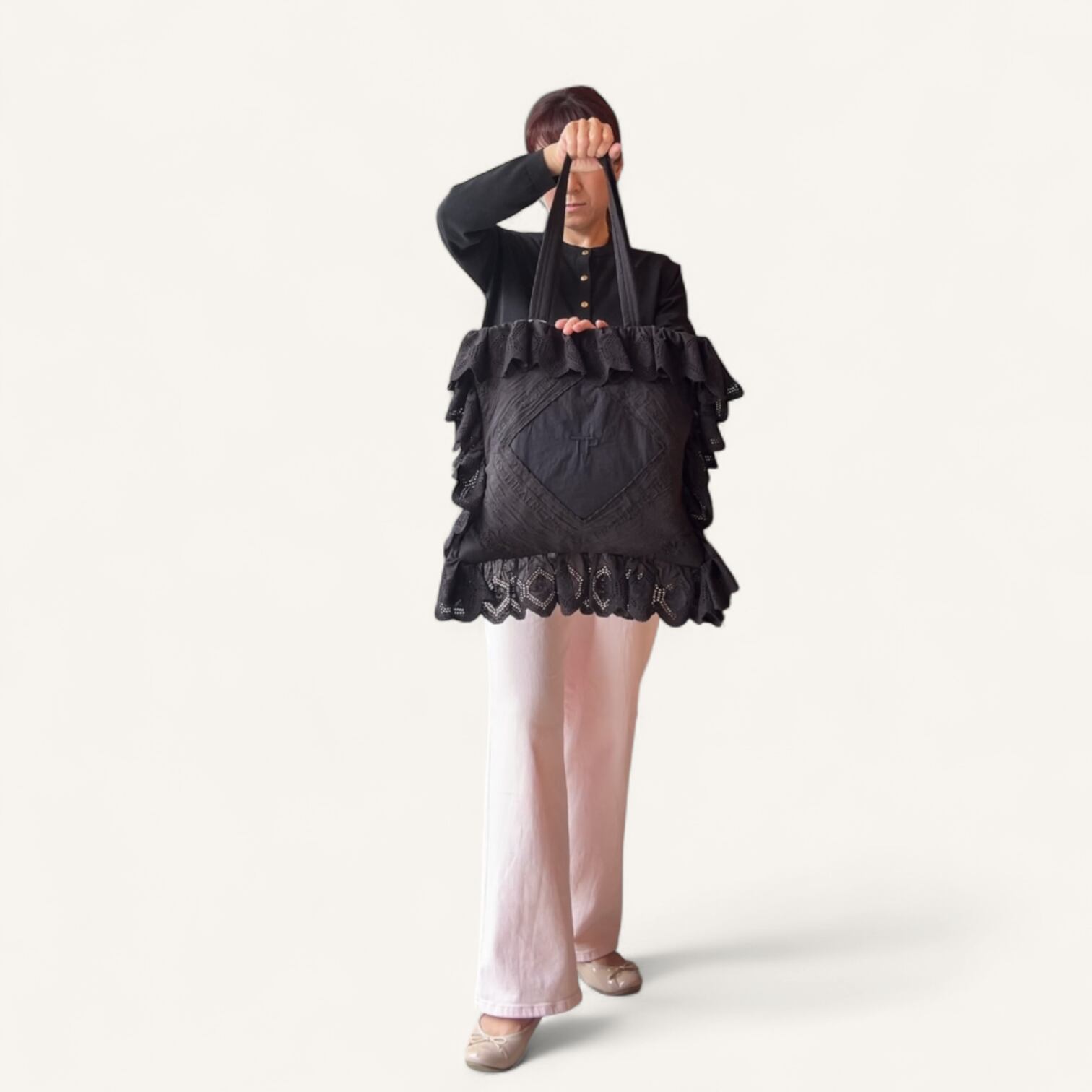 COTTON LACE TOTE BAG-Black〖THEATER PRODUCTS〗/コットンレーストートバッグ シアタープロダクツ