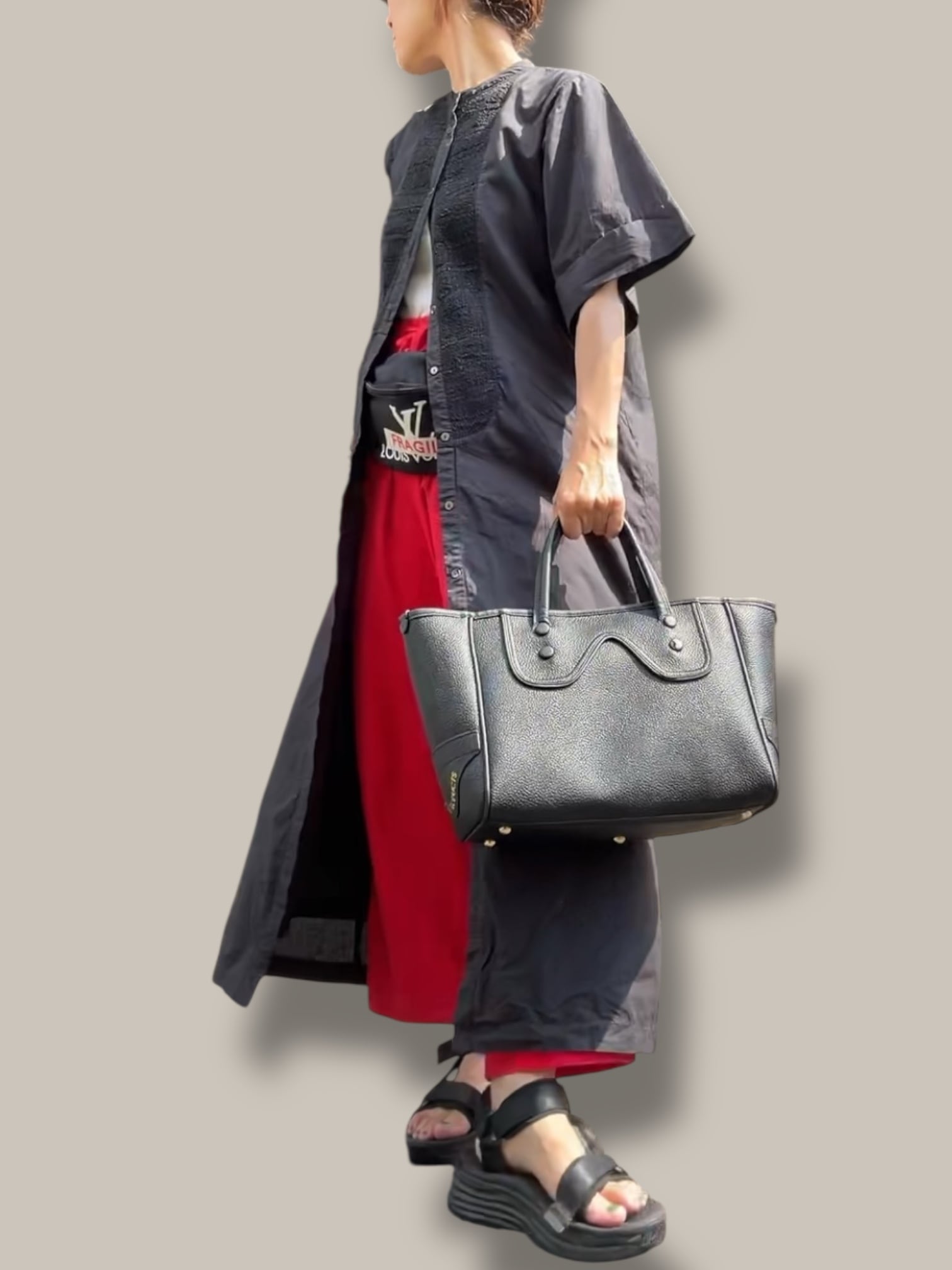 500mlペットボトルもすっぽり入るサイズ感で、普段使いにはもちろん、通勤バッグとしてもおすすめのバッグ。