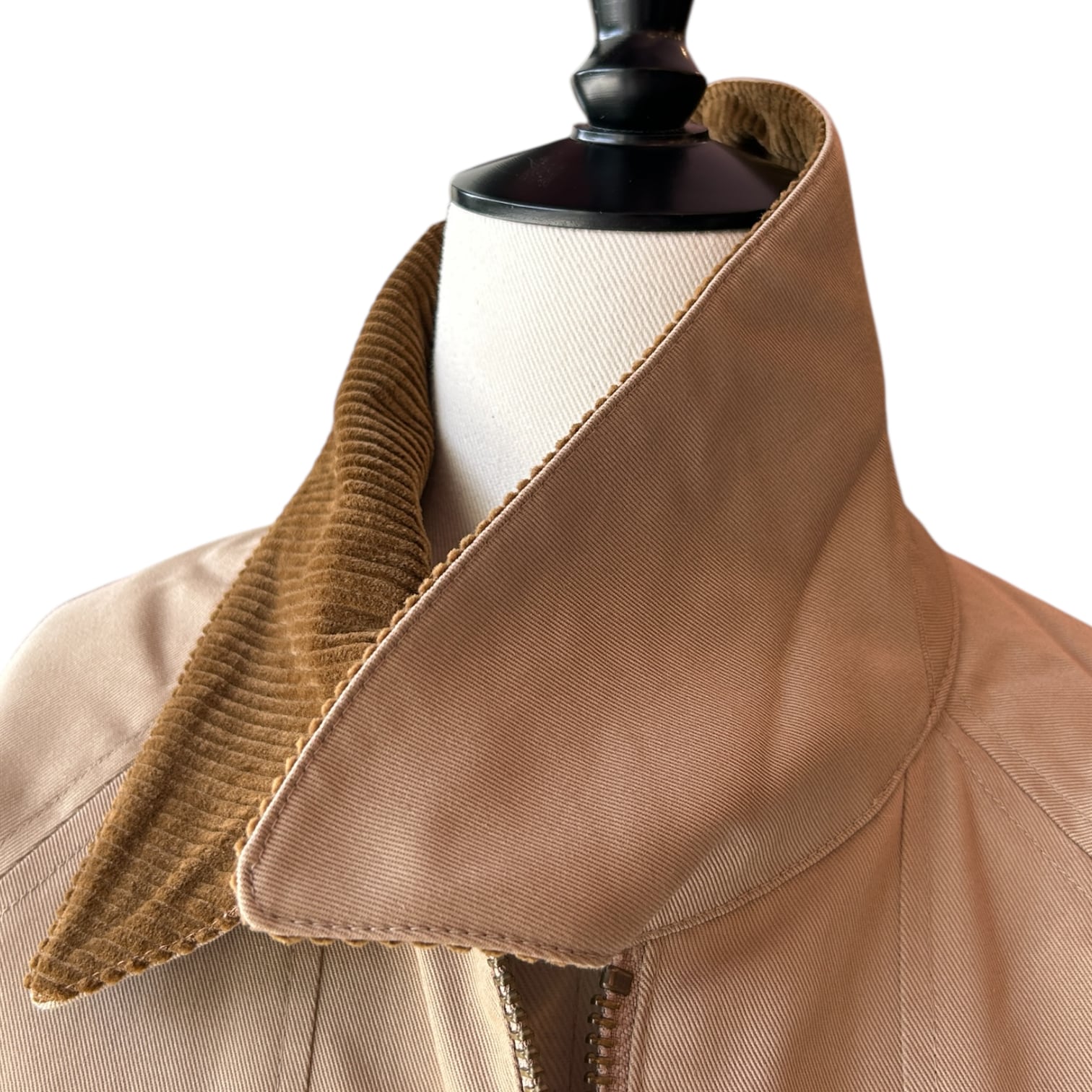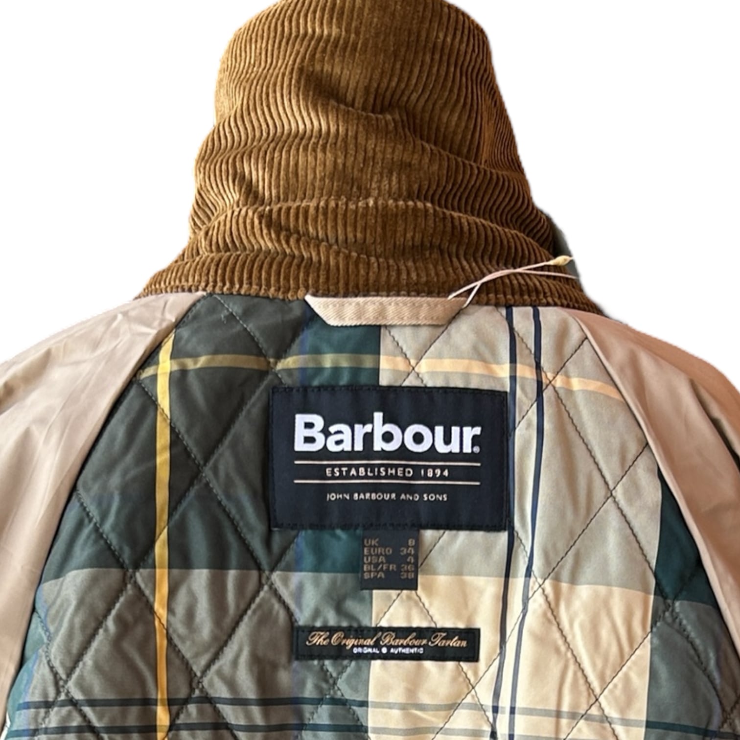 中綿入りでほどよい暖かさをキープしつつ、バブアーらしいコーデュロイの襟と、内側にはタータンチェックのキルティングライニングを施して、上品さとクラシックなムードをプラス。