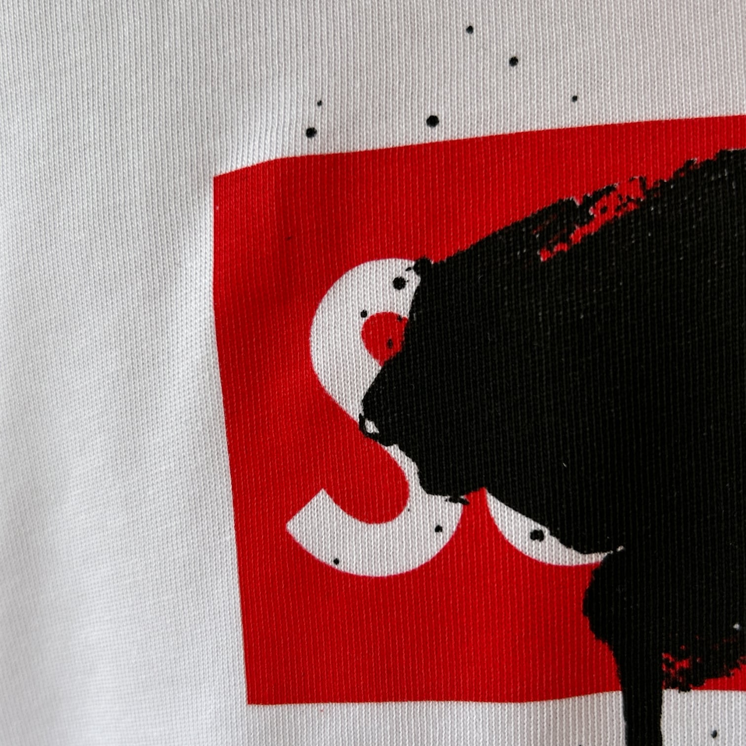 ひとつひとつハンドプリントで仕上げられた1点ものなどを制作。ロンドンを拠点とするブラックスコアはシーズンやテーマを特に設けず、デザイナーがインスパイヤされる時事ネタをスピーディーにTシャツにプリントします。