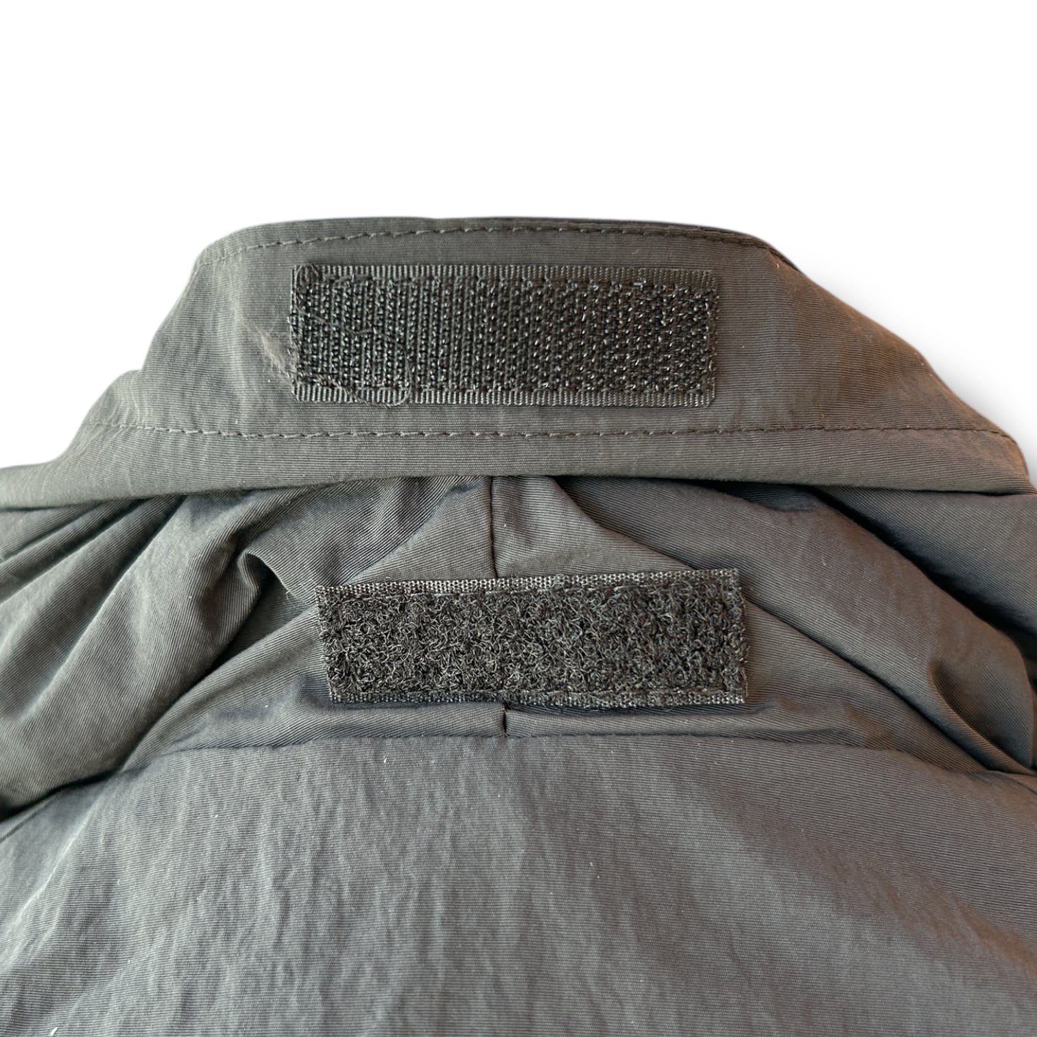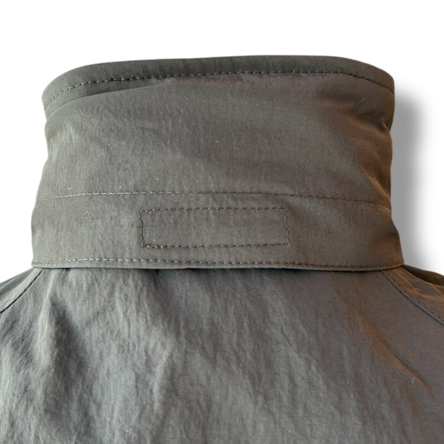 スタンドカラーの内側には同素材のフードが収納されており、突然の雨にも対応できる、嬉しいディテール。