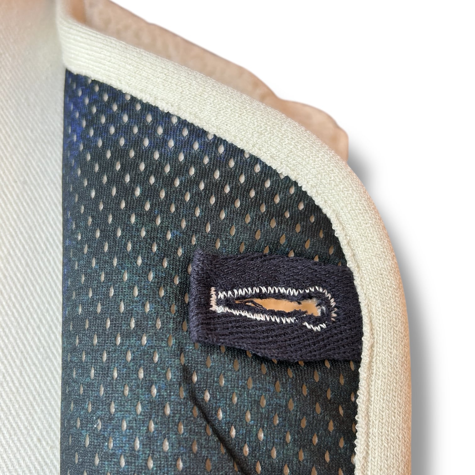 ●裏地にはチェック柄の生地が付いているので、着用時のもたつきを軽減してくれるだけでなく着脱時も楽ちん◎