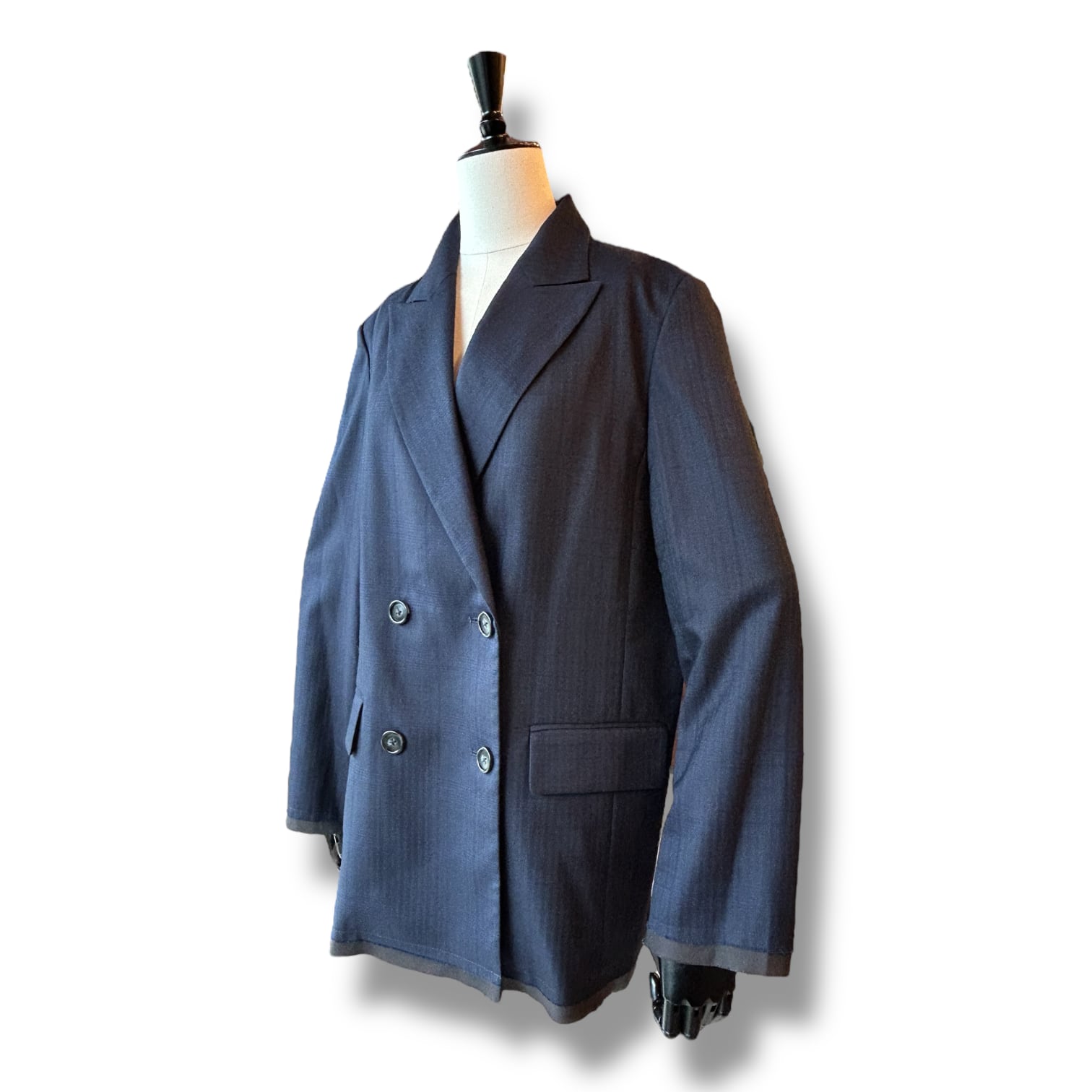 ・メンズっぽいダブルジャケットでトレンド感を演出。