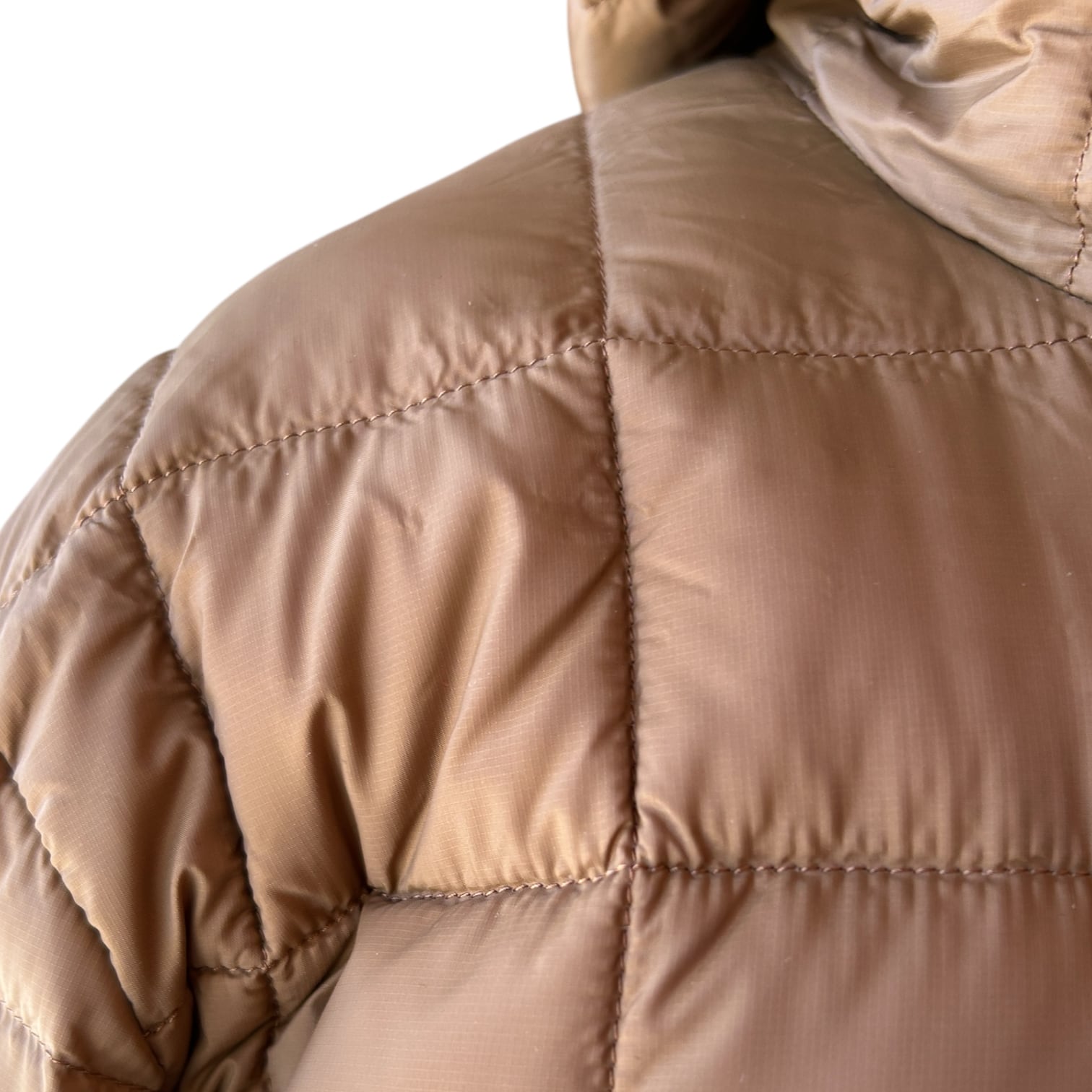ダウンは天然由来の素材であるため、稀に濃い色の羽が混入することがあり、表面に透けて見える場合がございます。※こちらは不良品ではございません。返品や交換につきましてはご対応いたしかねますので、あらかじめご了承ください。(解消方法:少し目立つ箇所がございましたら両手で少し揉んで頂くと目立たなくなります。)