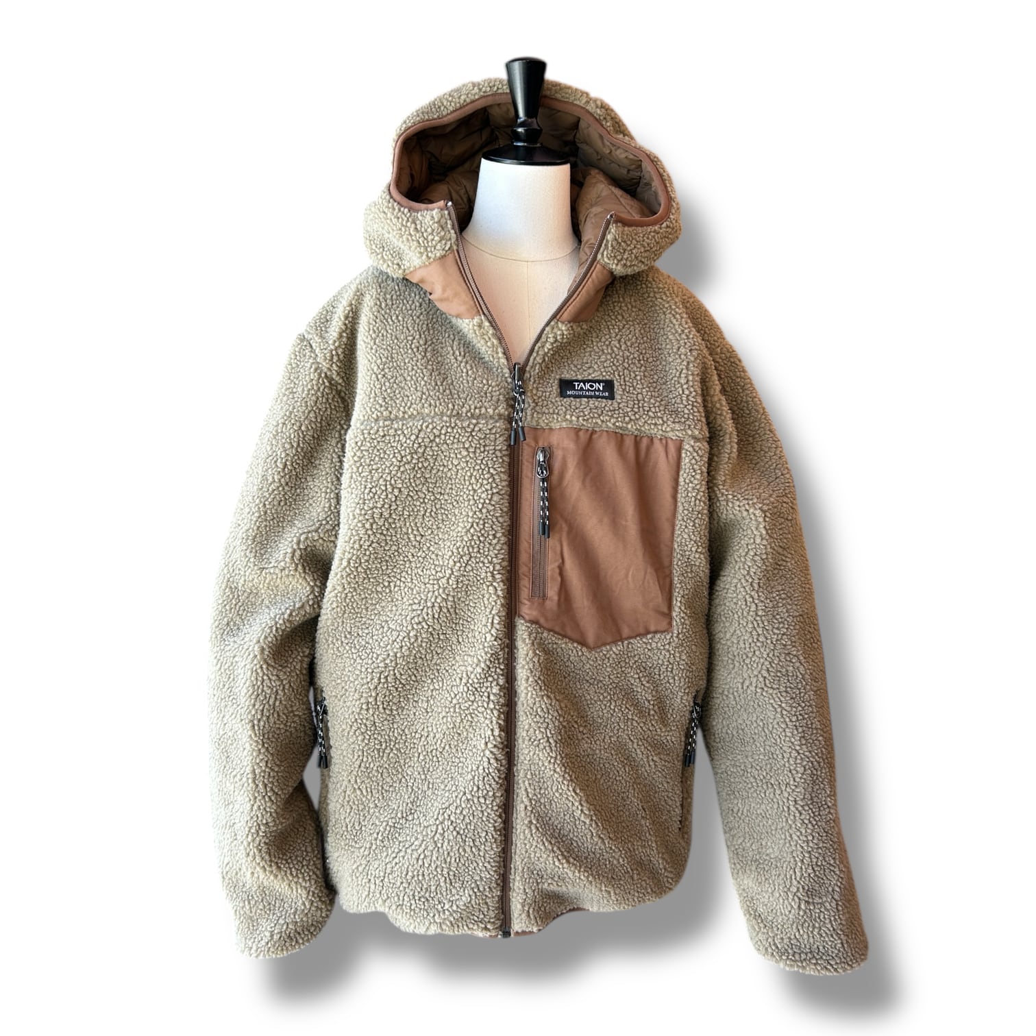 "UNISEX"MOUNTAIN REVERSIBLE BOA FOODIE-Light Brown×Beige〖TAION〗マウンテン リバーシブル ダウン×ボア フーディー タイオン