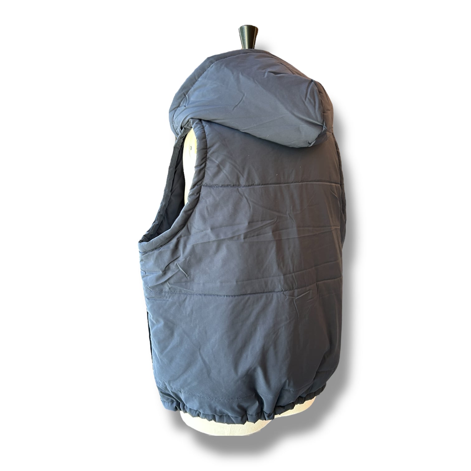 軽くてソフトな着心地の中綿素材を使ったフードダウンベストです。