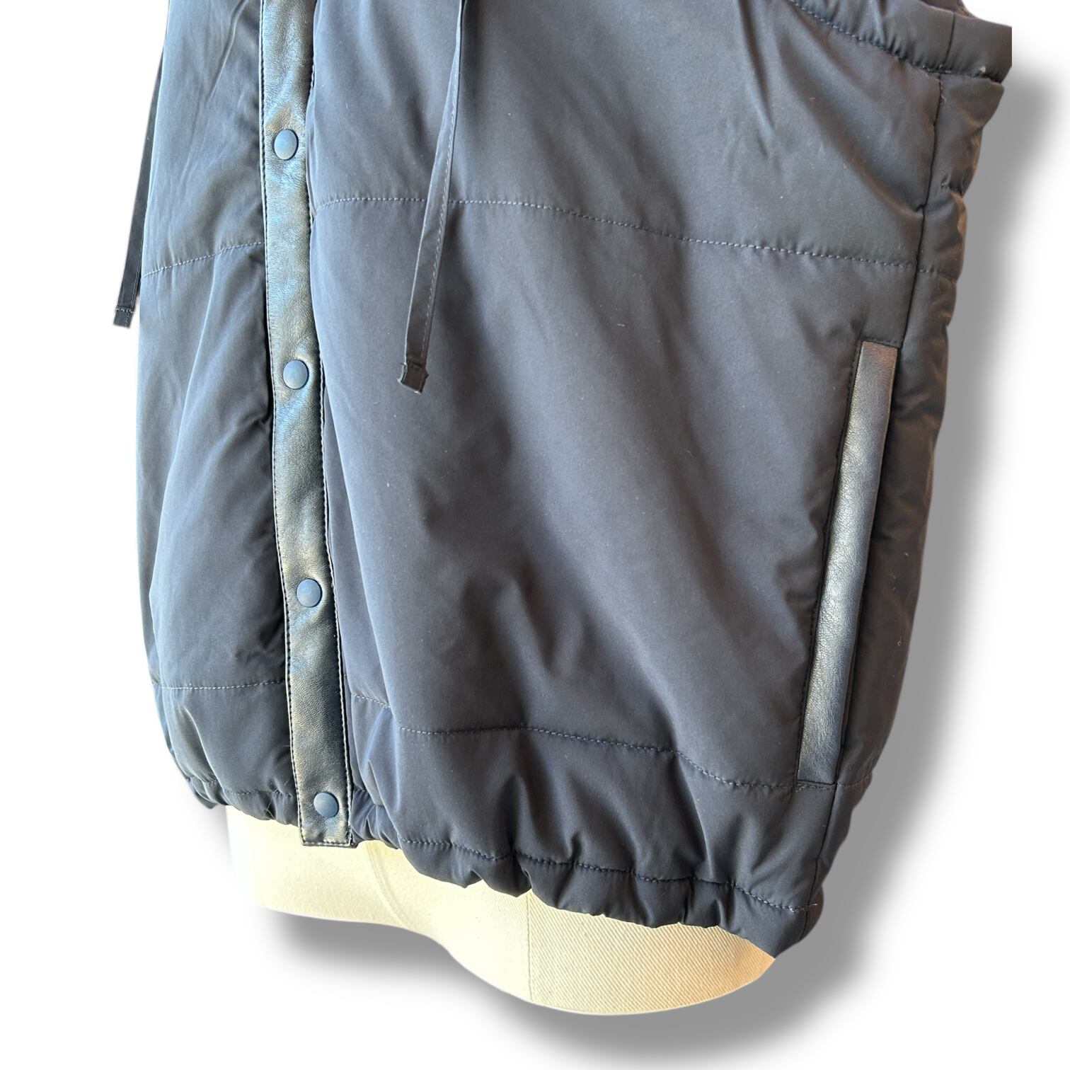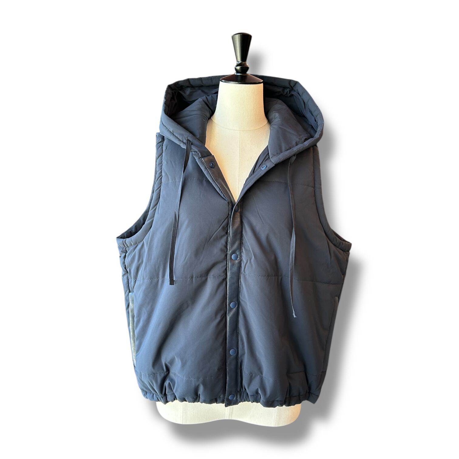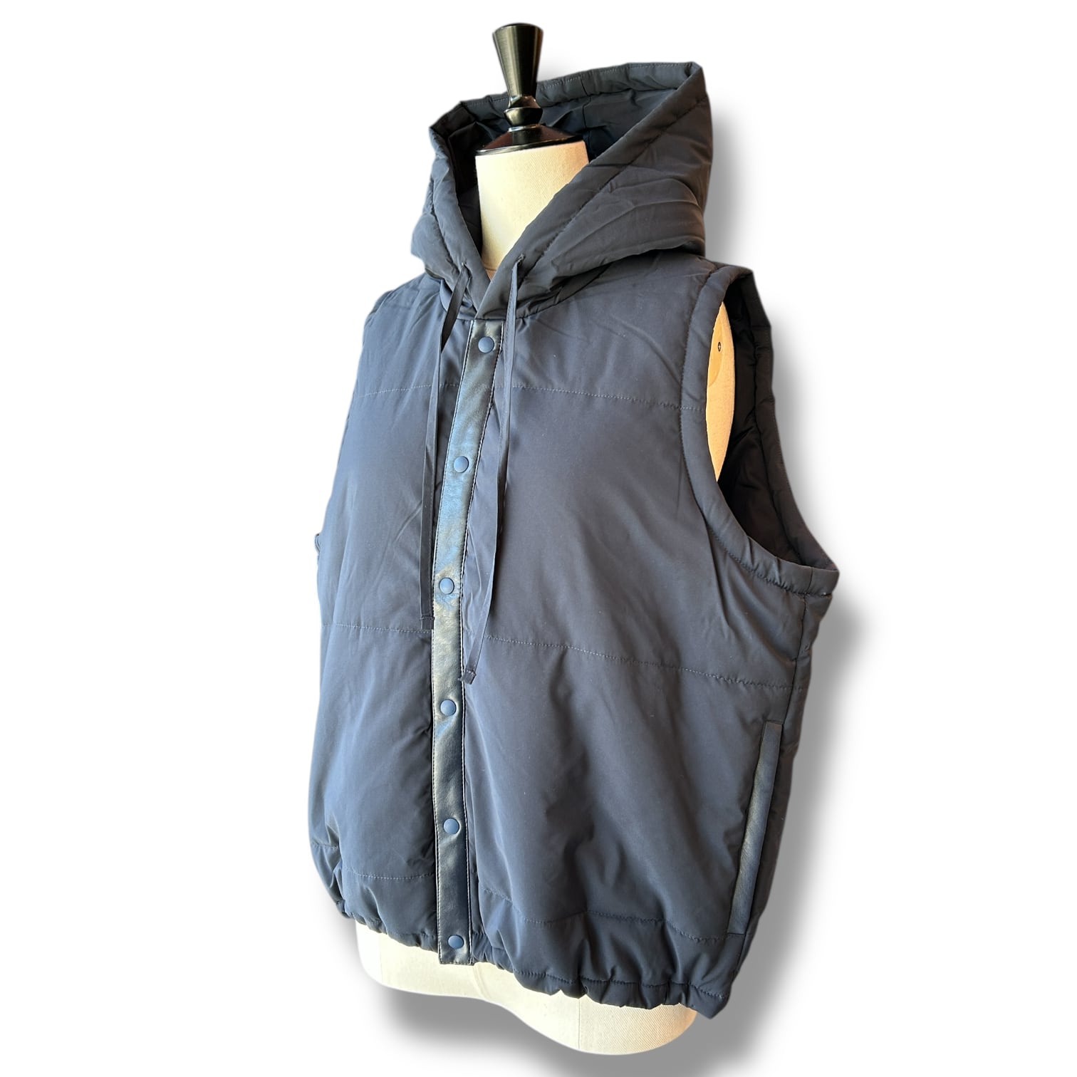 カジュアルな要素の強いフードベストを”上品さ”の素材で
