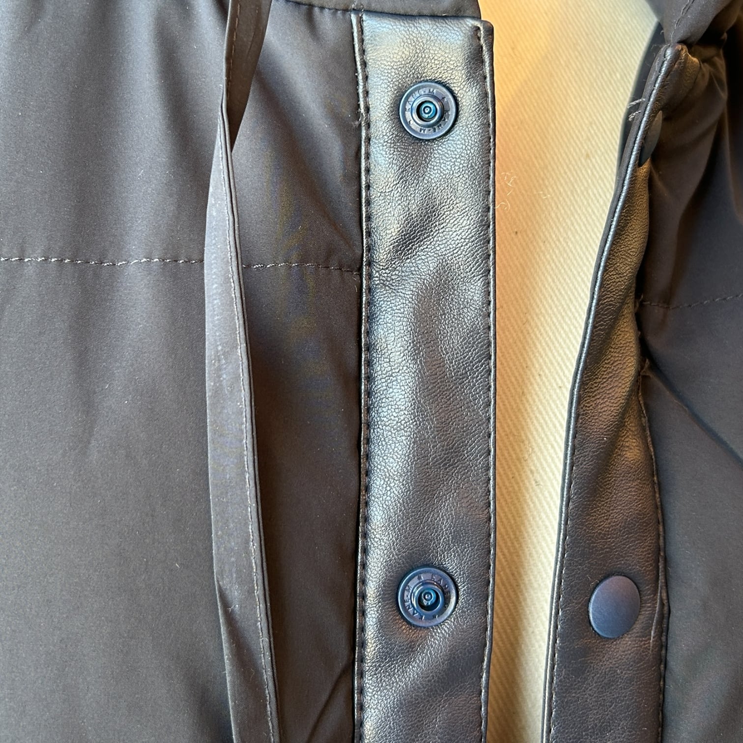 各所にエコレザーをパイピングしており上品さを出しているのと、縫い目を