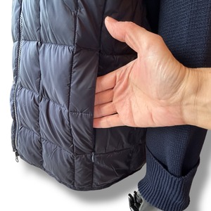 "UNISEX" HI NECK DOWN JACKET+SLEEVE KNIT-Navy【TAION】TAION-TAION-102WZSN ベーシック ハイネックWジップ ニットスリーブダウンジャケット