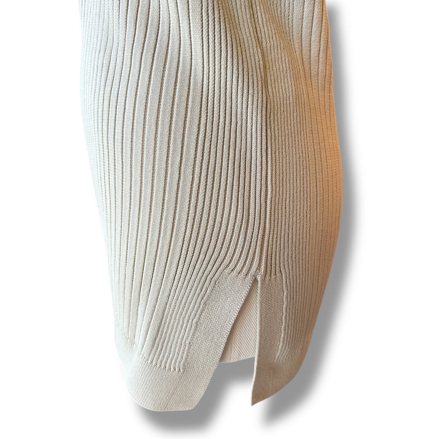・リブ編みの立体感がシルエットをスリムに見せる。