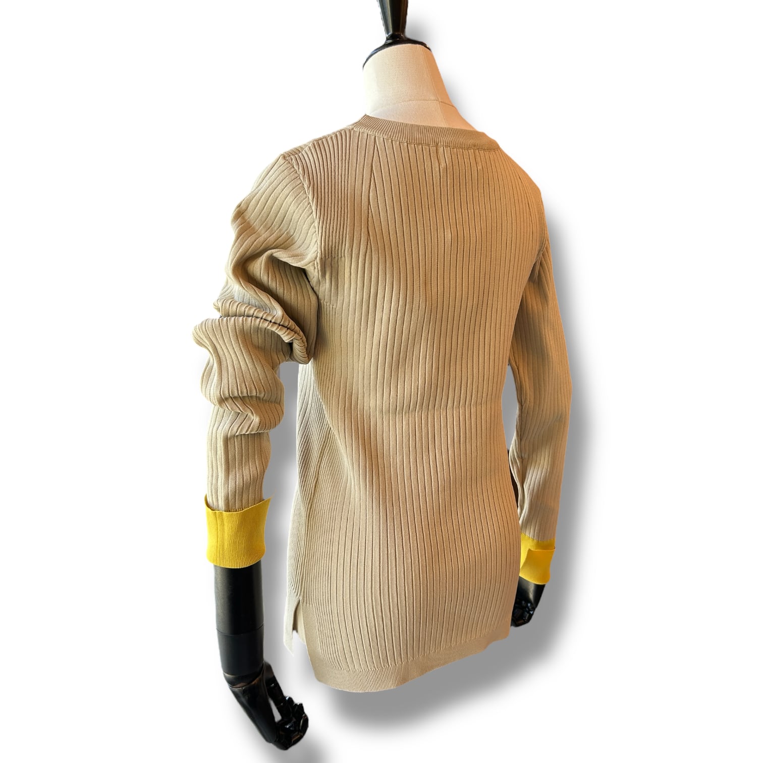 TWO COLOR RIB KNIT-Beige×Yellow【Herencia】ツーカラーリブニット-ヘレンチア
