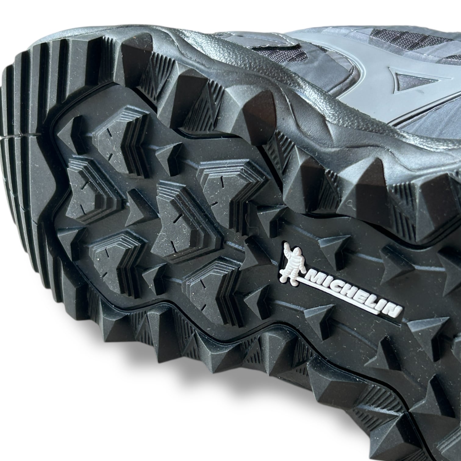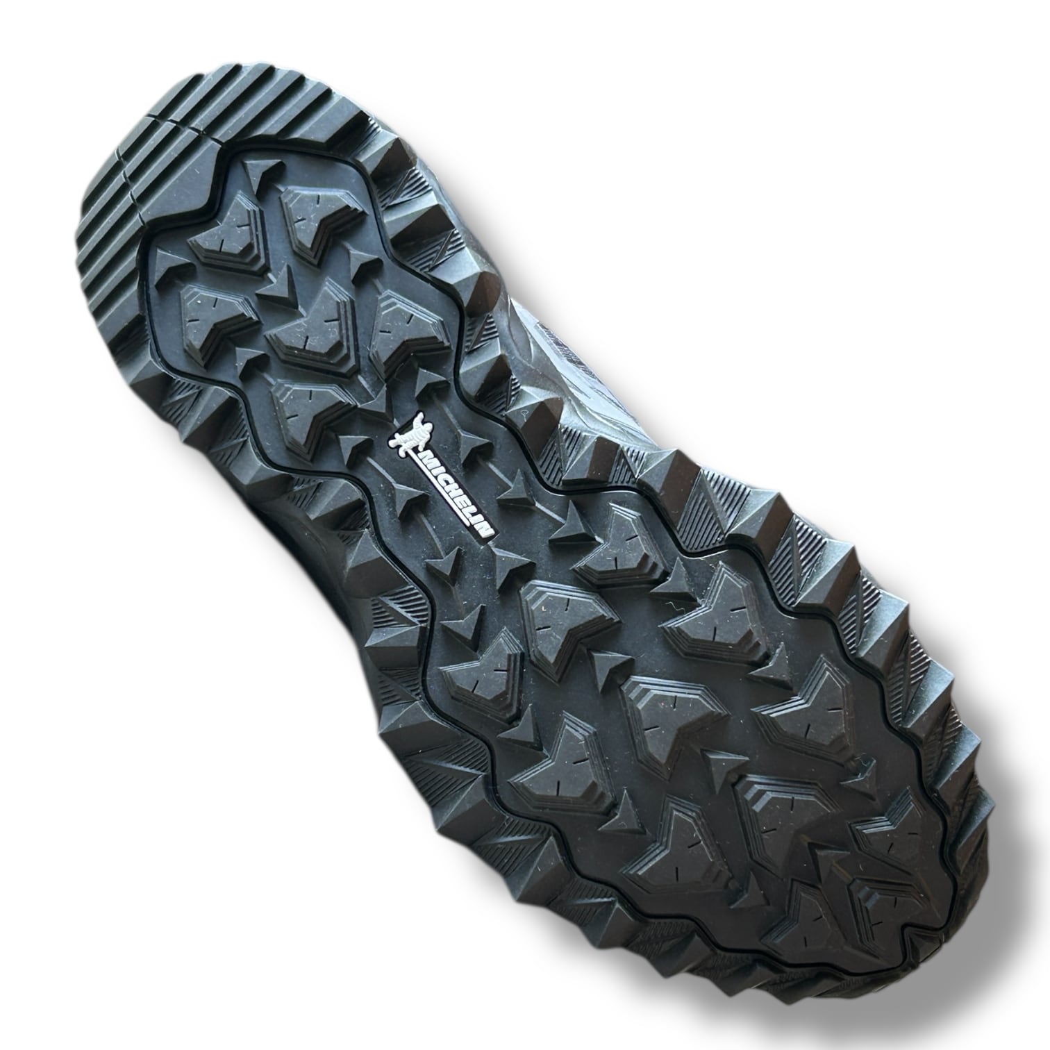 アウトソールはミシュランソールを搭載し、ライフスタイルで使えるトレイルスニーカーとして作り上げている。