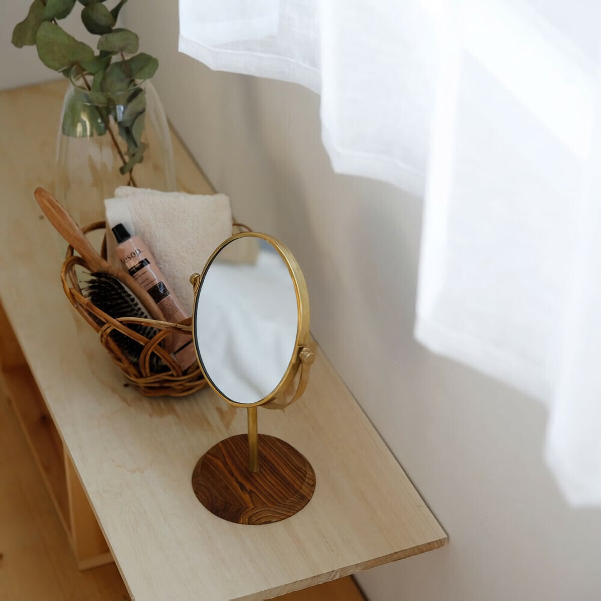 BRASS& WOOD DESK TOP MIRROR-Lサイズ ブラス&ウッド デスクトップ ミラー/鏡