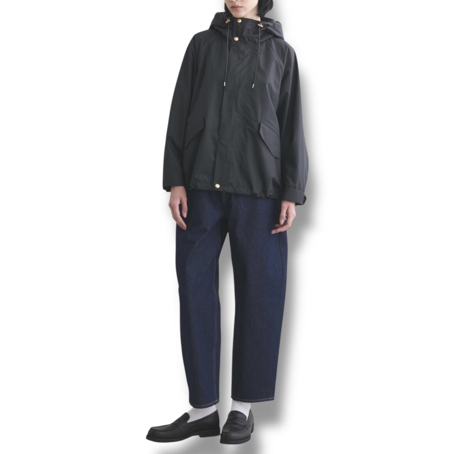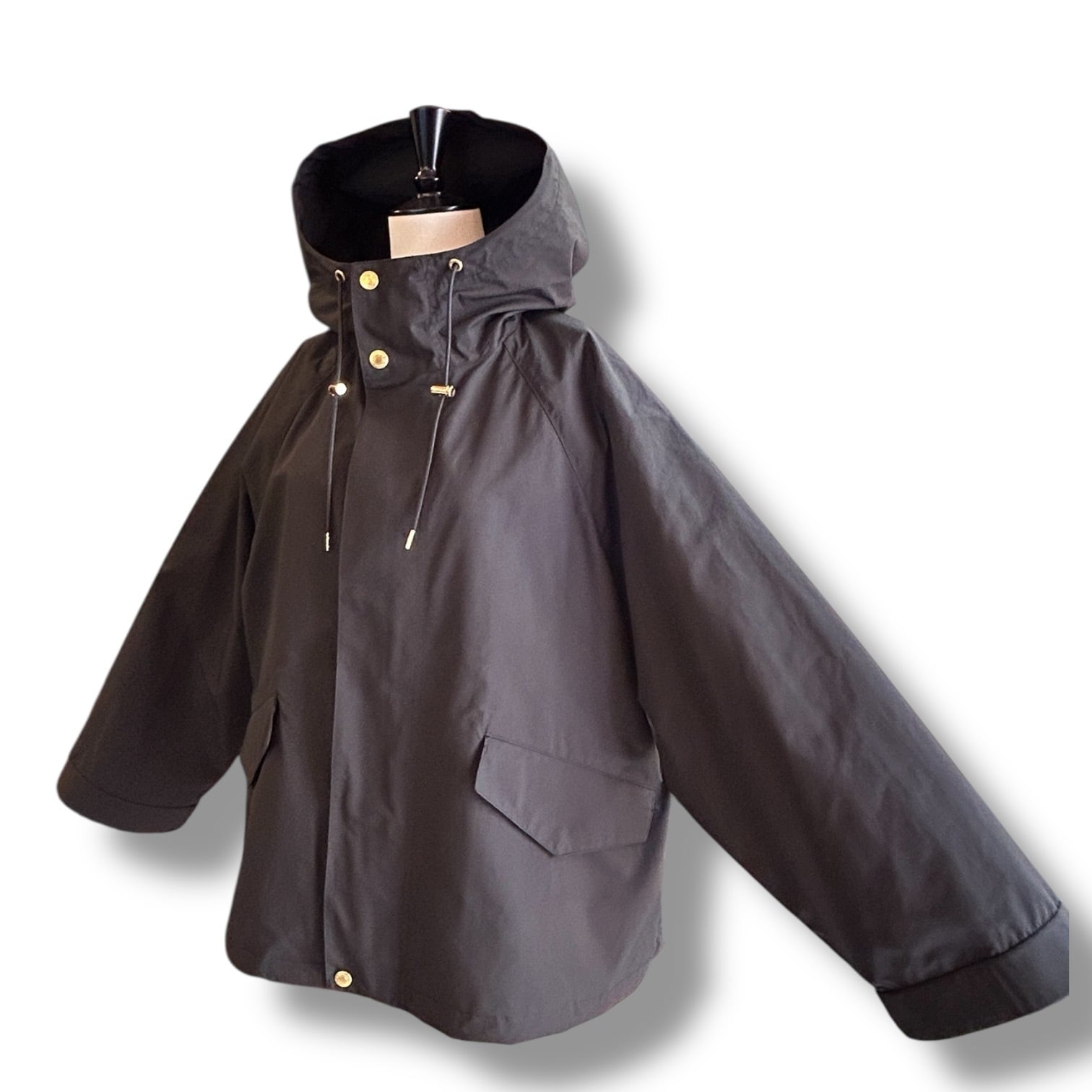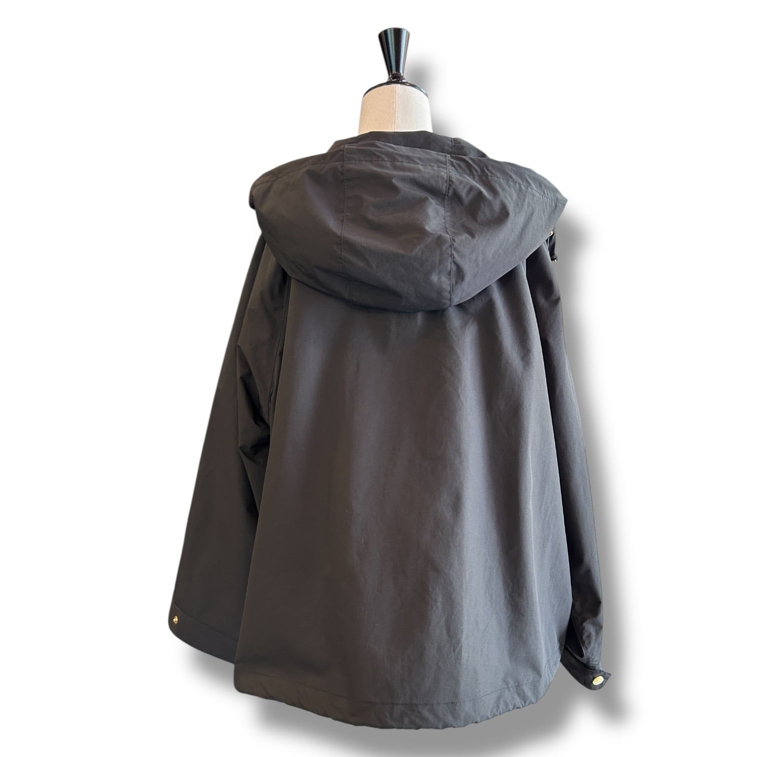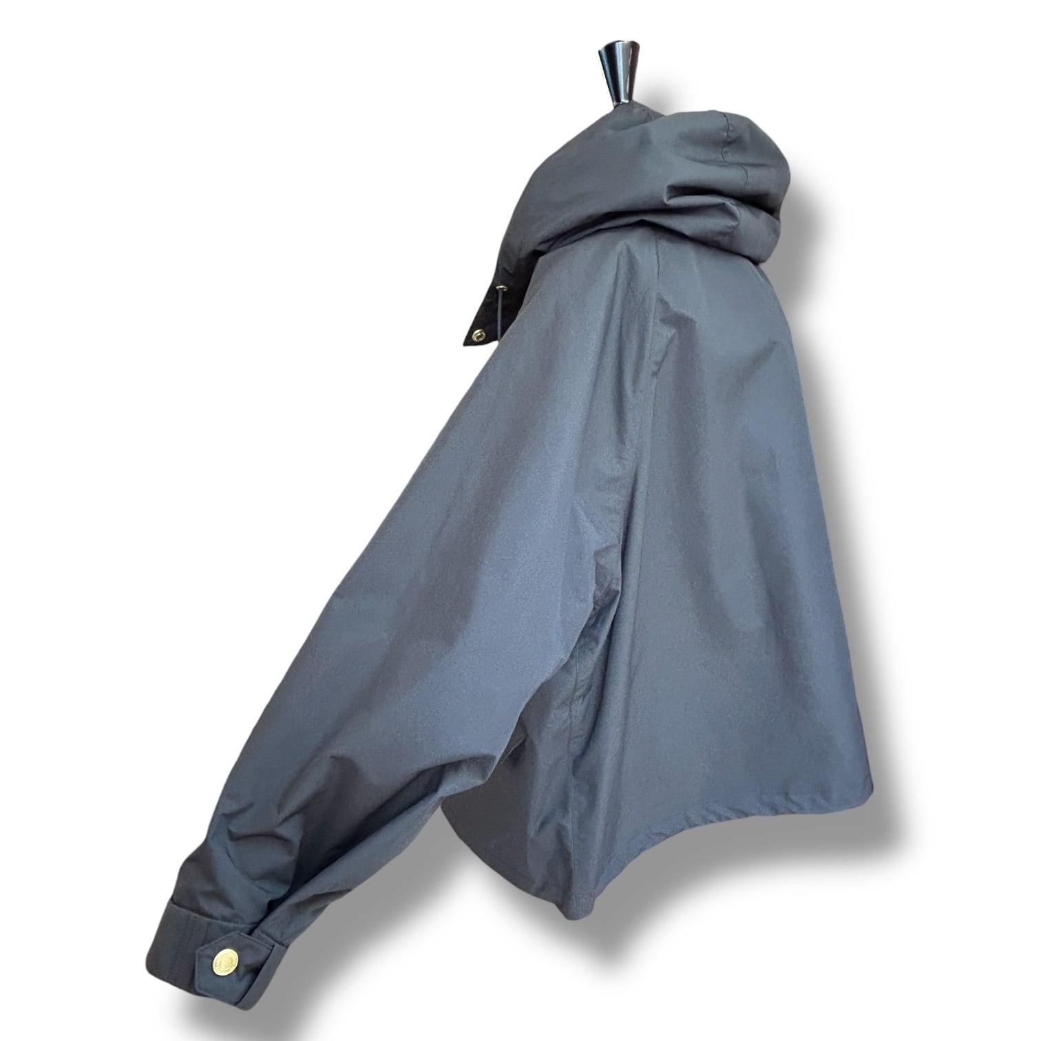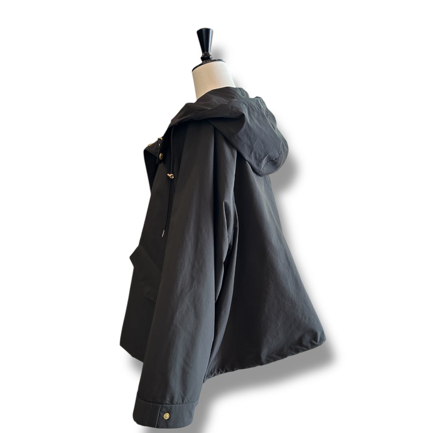 こちらの新モデルは、セルシーの着丈が28cmほど短くなったモデルで、程よくゆとりのあるラグランスリーブと、持ち出しがついて調節できる袖口のディティールのあるミニマルなモッズコートです。