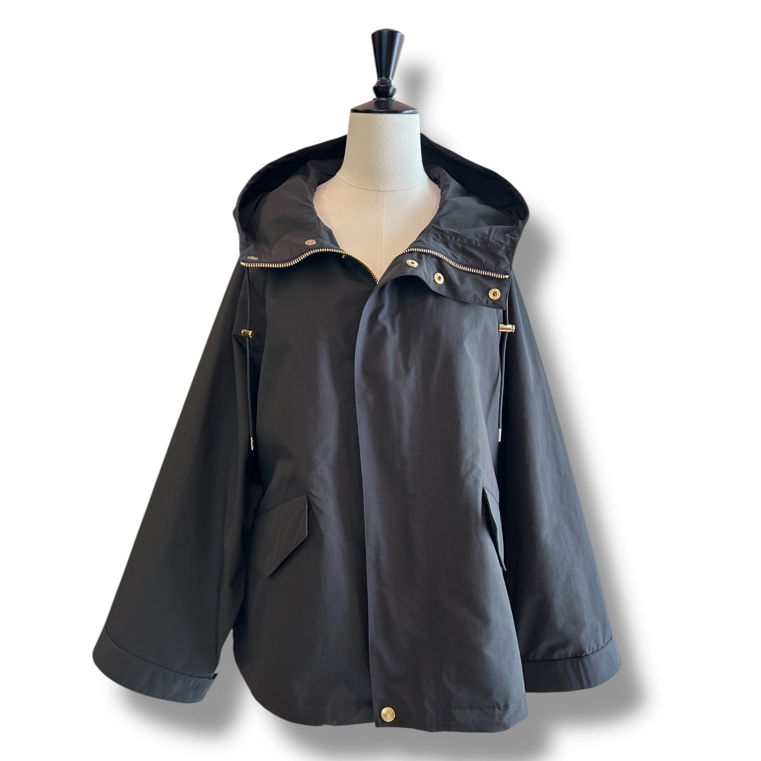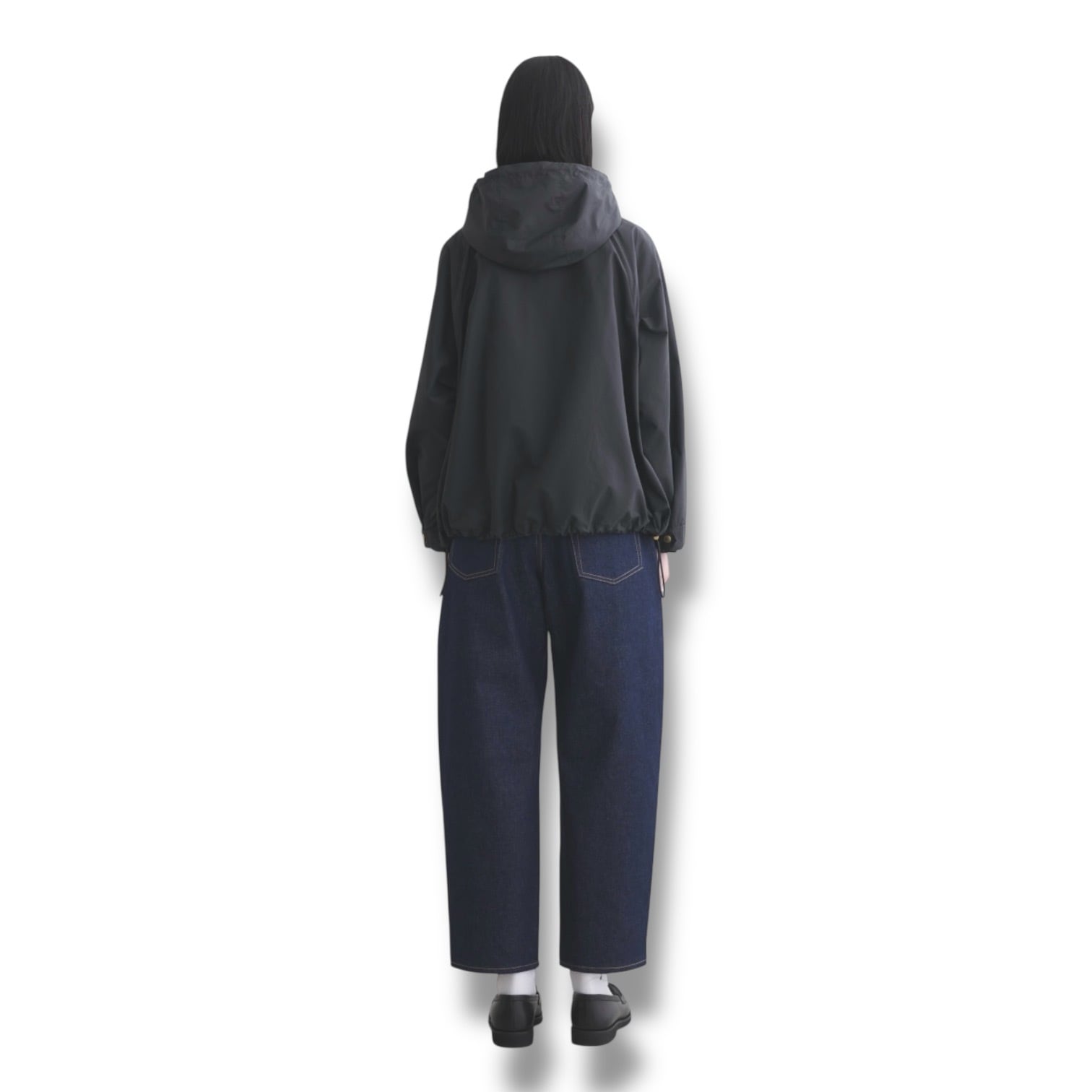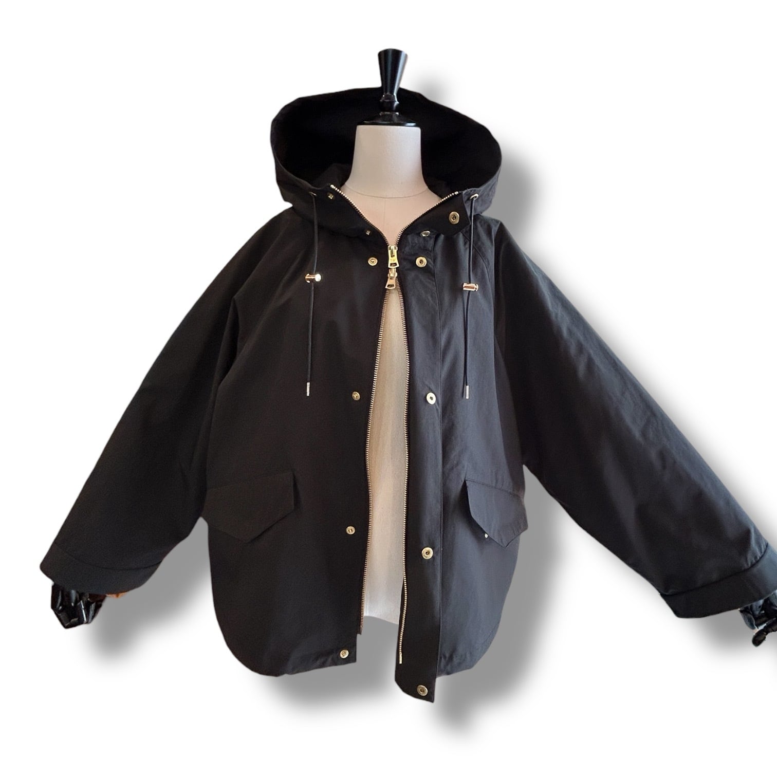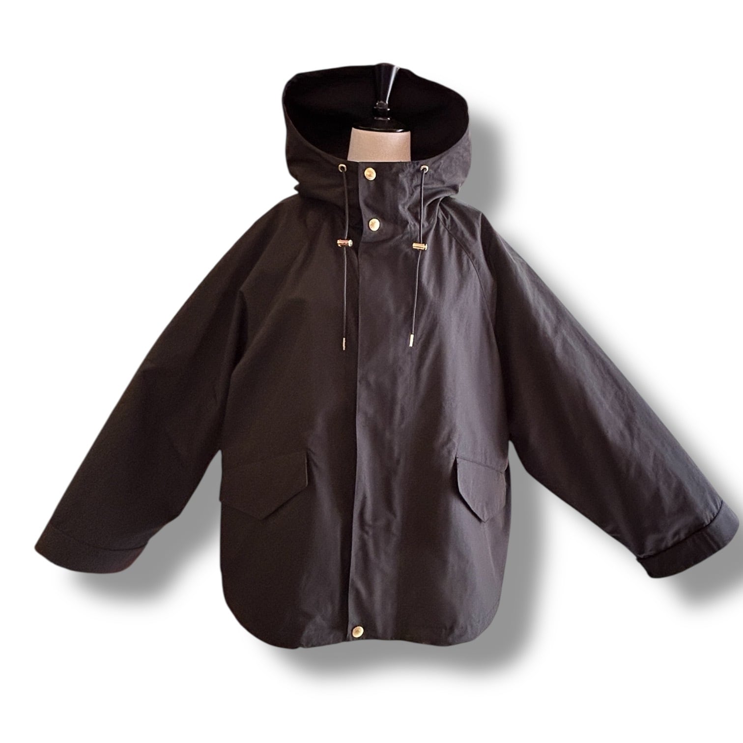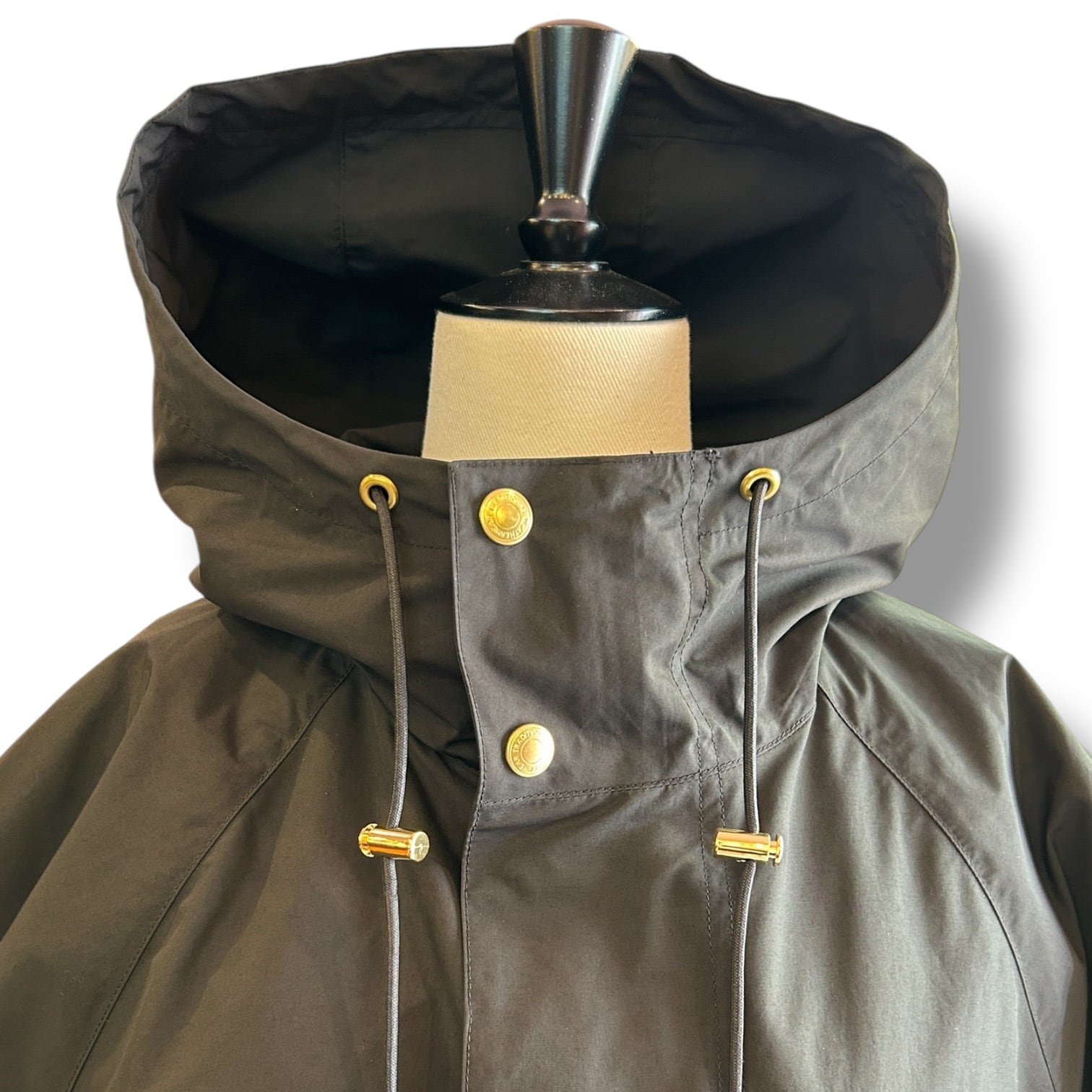 こちらの新モデルは、セルシーの着丈が28cmほど短くなったモデルで、程よくゆとりのあるラグランスリーブと、持ち出しがついて調節できる袖口のディティールのあるミニマルなモッズコートです。