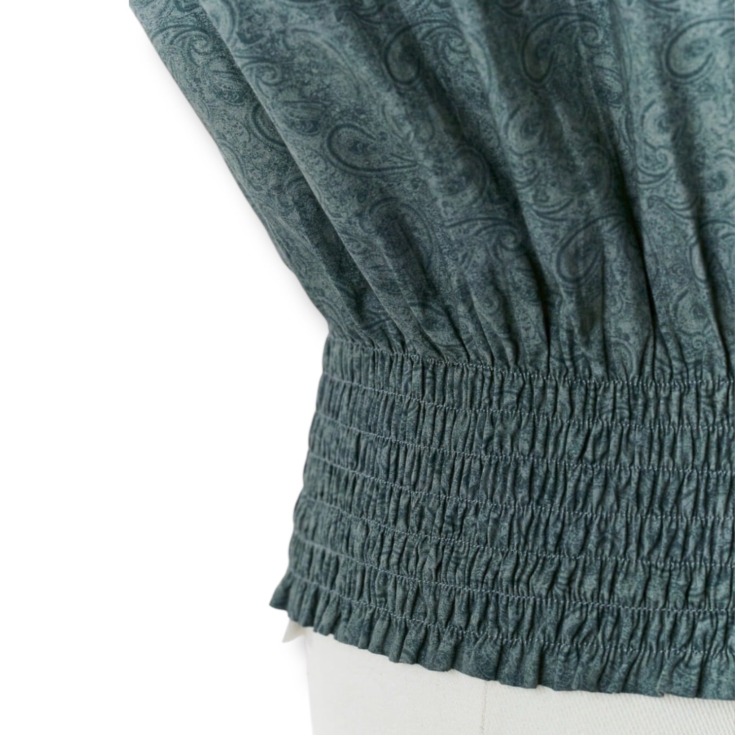 袖と裾部分にシャーリングを施し、自然な絞りディティーるが作れるので