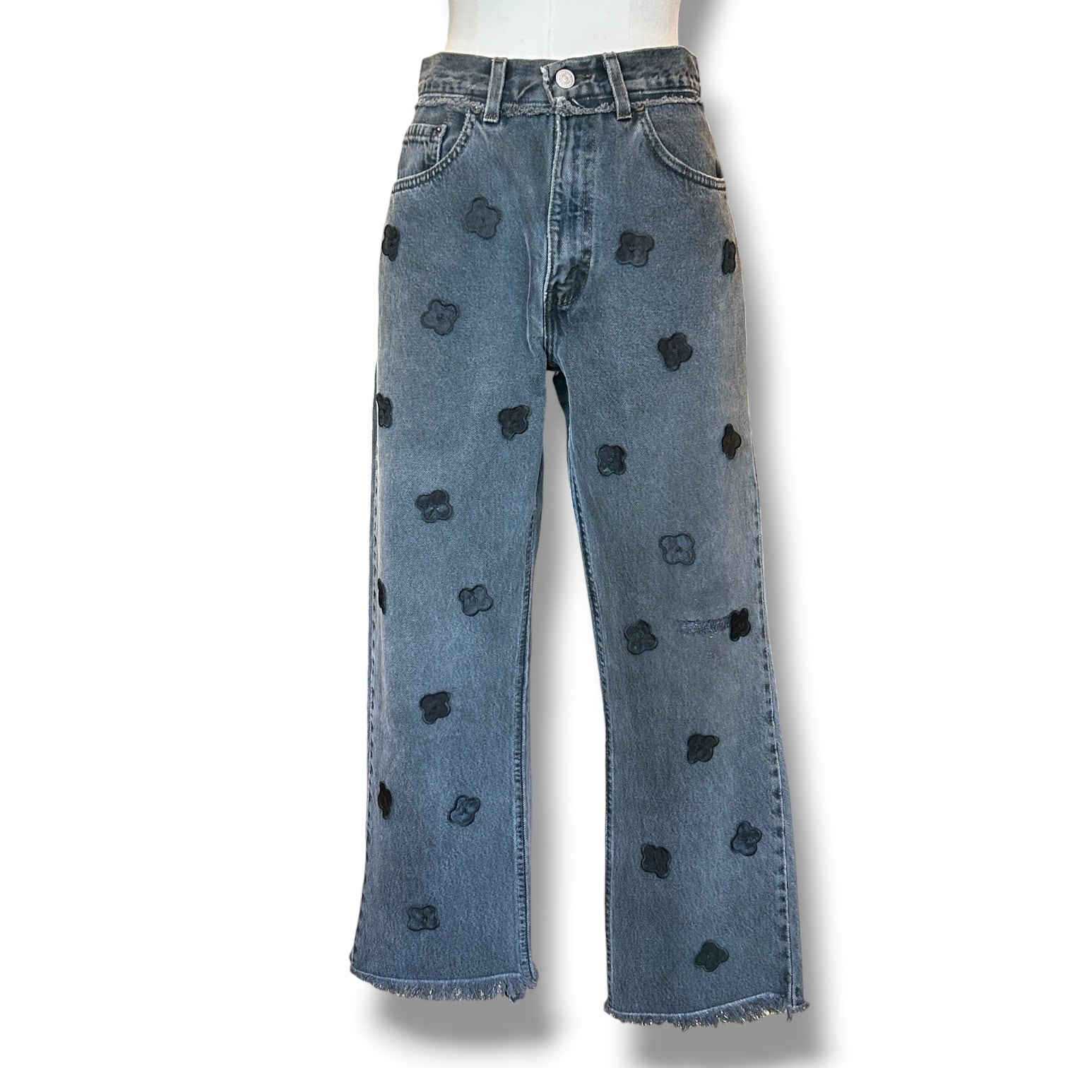 REMAKE DENIM -Pigment Black Flower【RIVER Kyoto】リメイクデニムパンツ リバー