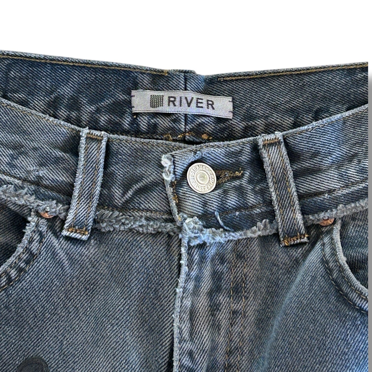 一点一点usedデニムを解体し、新しいシルエットに再構築することでまるで初めからその形で存在していたかのような自然な佇まいを追求したRIVERのジーンズ。