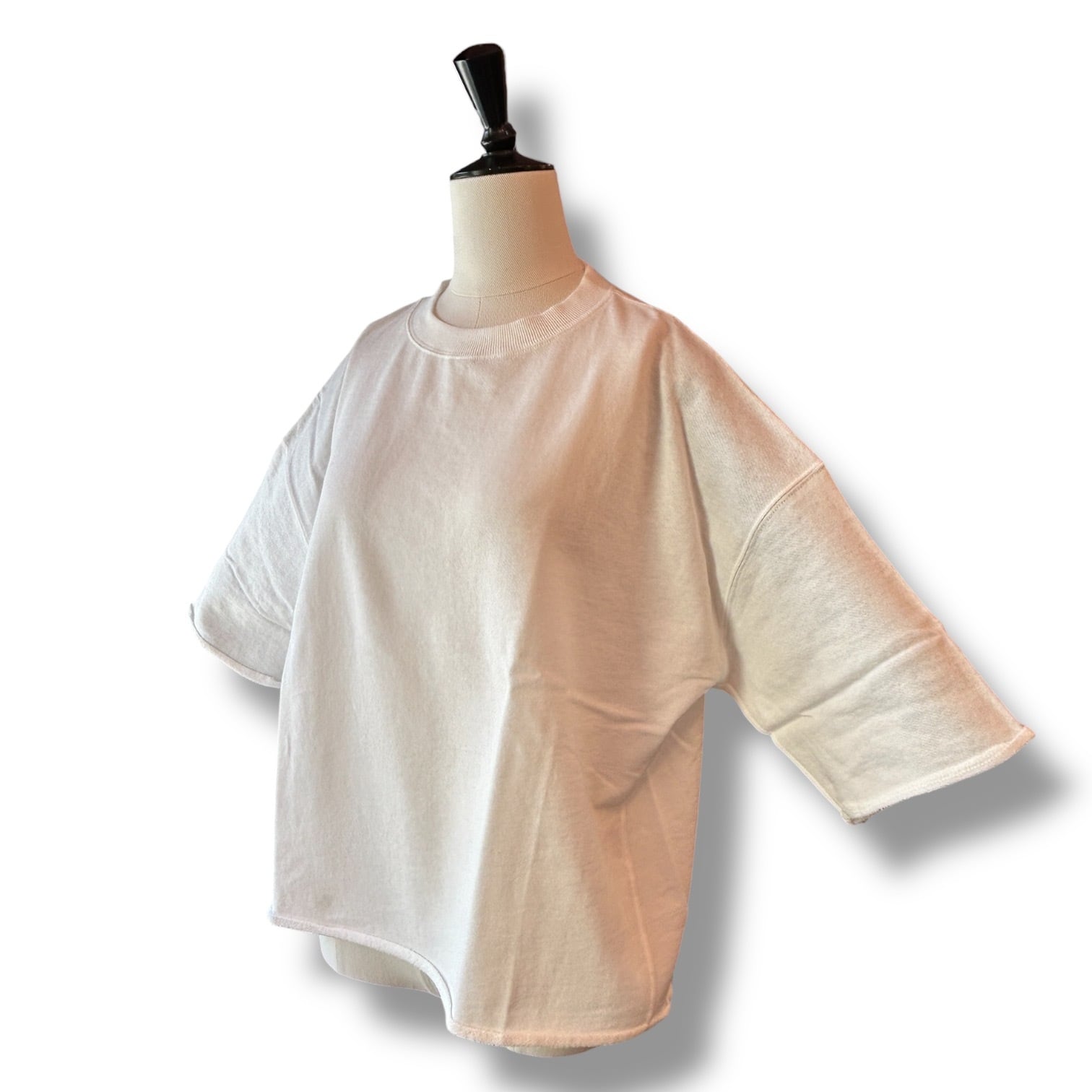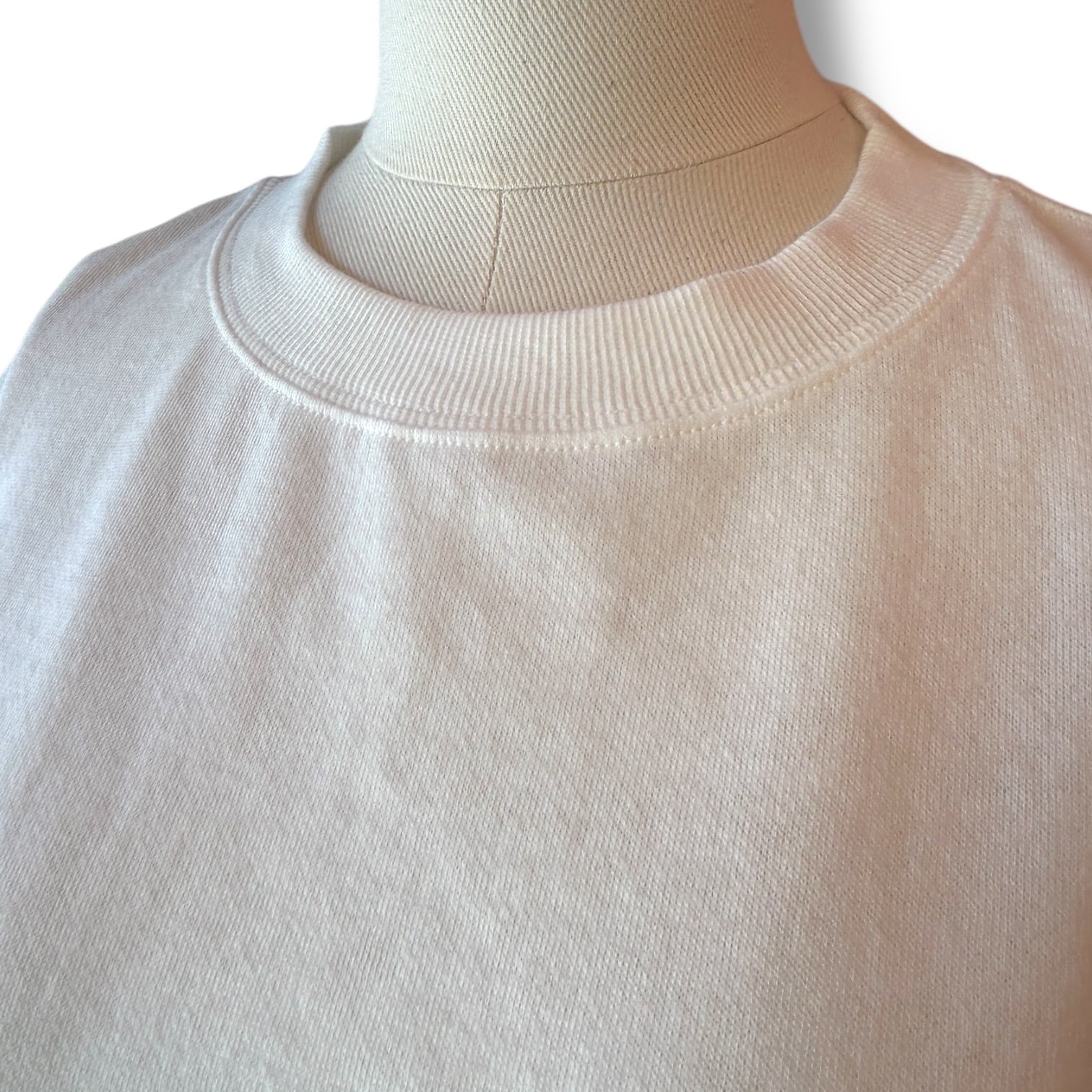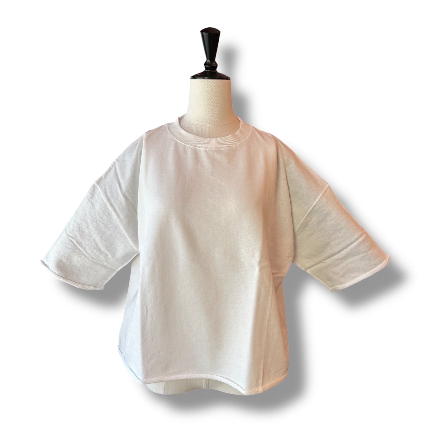 パイル生地をハイサマーでも着れる超薄手に仕上げています。 軽やかな着心地を実現している カットソーメーカーのシレーヌマーメイドならではの1着です。 汗ばむ季節でも肌に触れる内側がパイル生地になっていることで 汗の吸収もよく、洗濯しやすい綿Tシャツです。 〖サイズ〗フリーサイズ 身幅60×肩幅59×袖丈21×袖幅16×着丈56cm 〖素材〗綿100% リブ部分綿95%ポリウレタン5% 〖原産国〗日本