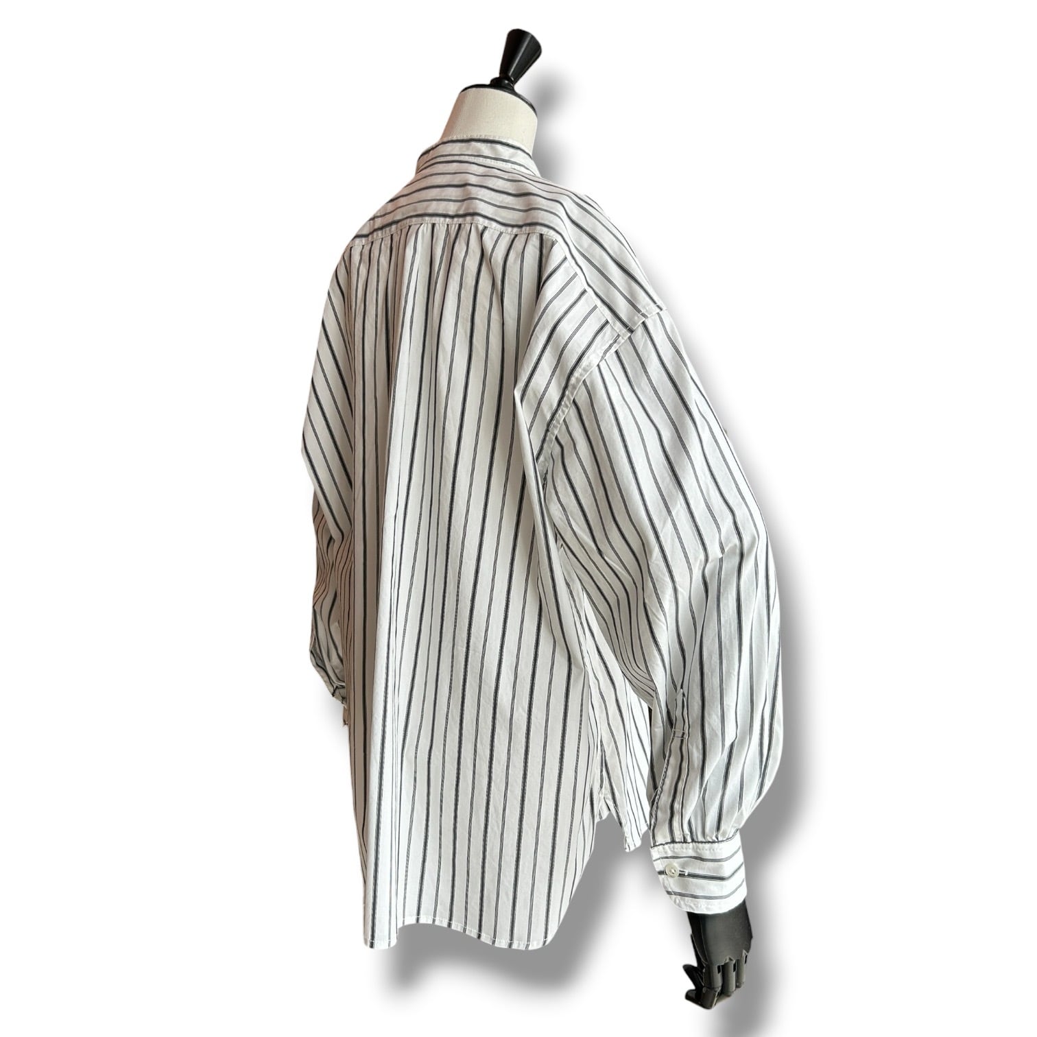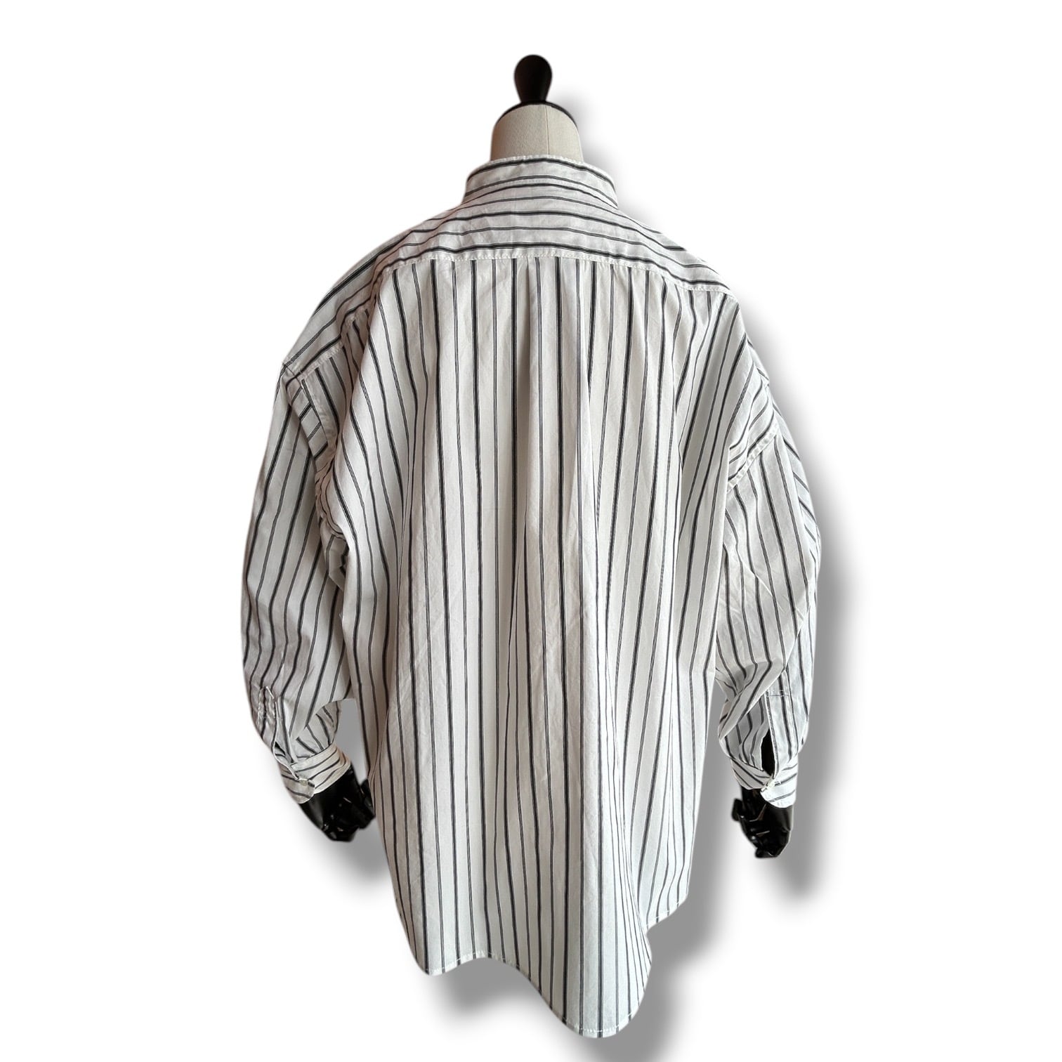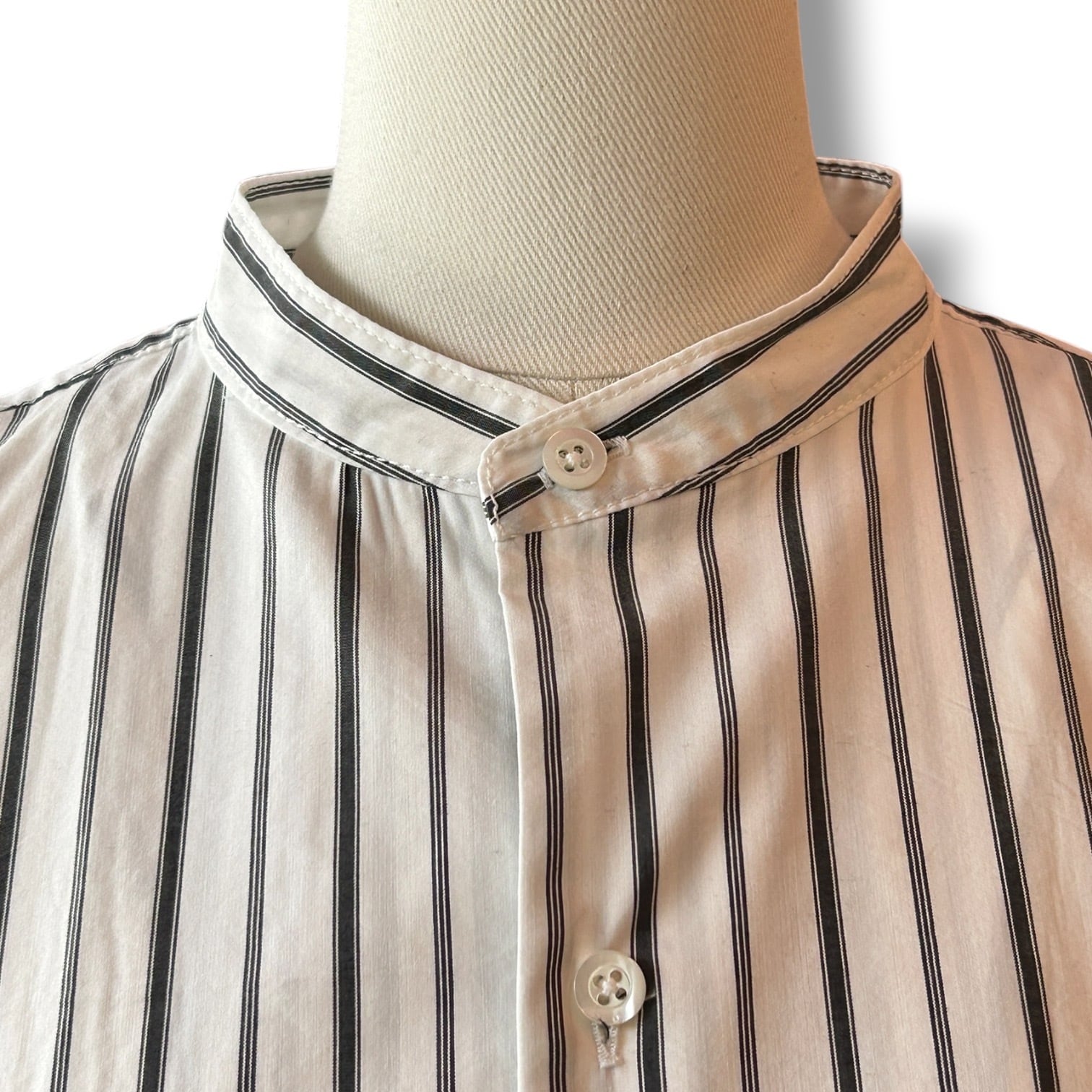〖ROYAL NAVY〗 今シーズン新しくなった定番のバンドカラーシャツ。 以前までは着丈が長くオーバーサイズシルエットのシャツでしたが 着丈を短くより着やすいシンプルなシャツとなっています。 〖サイズ〗 1 着丈68×身幅60×肩幅53.5×袖丈50cm 2 着丈70×身幅61×肩幅55×袖丈50cm 〖素材〗綿76%ナイロン21%ポリウレタン3% 〖原産国〗中国