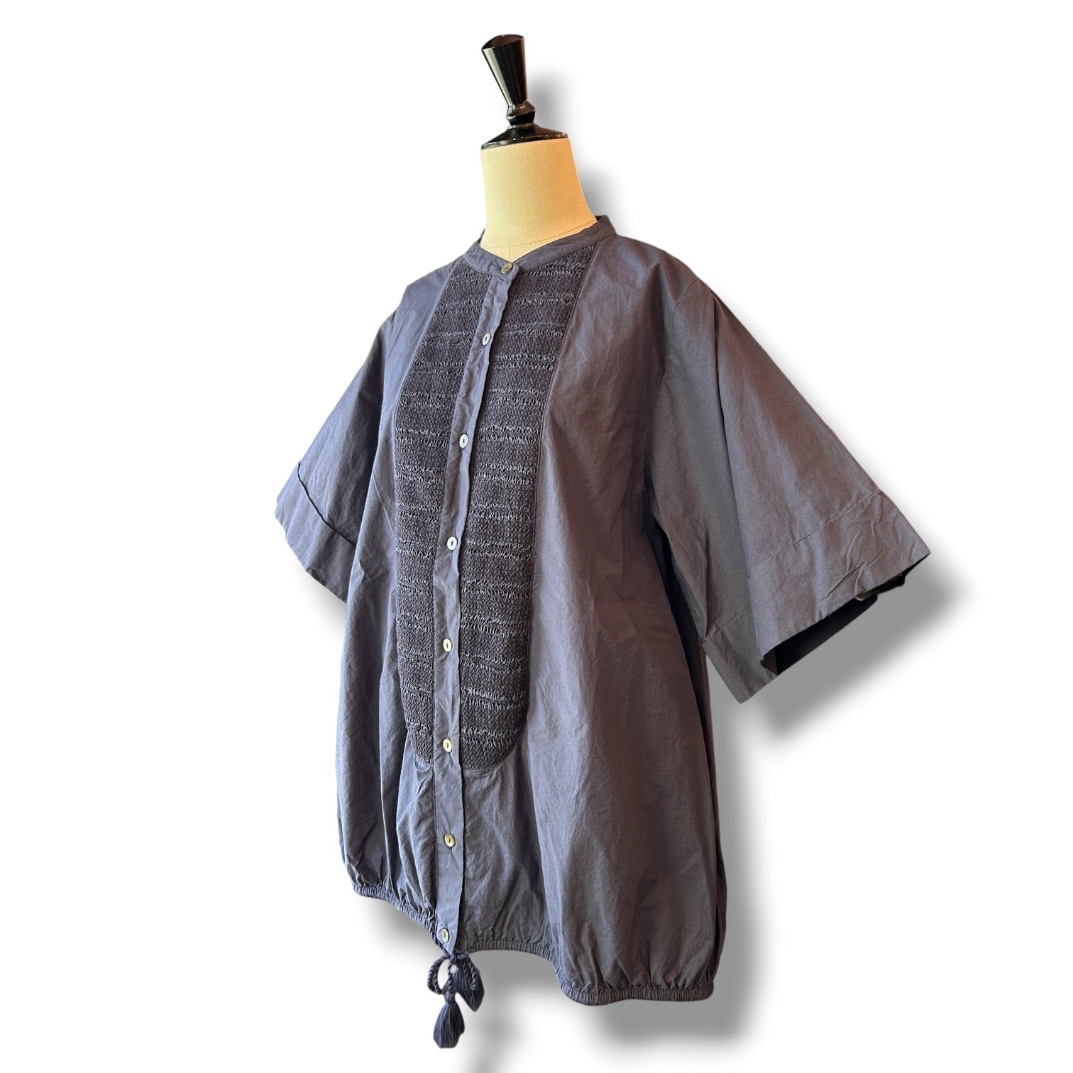Shearing Half Sleeve Blouse-Navy【IKITSUKE】シャーリングハーフスリーブブラウス イキツケ