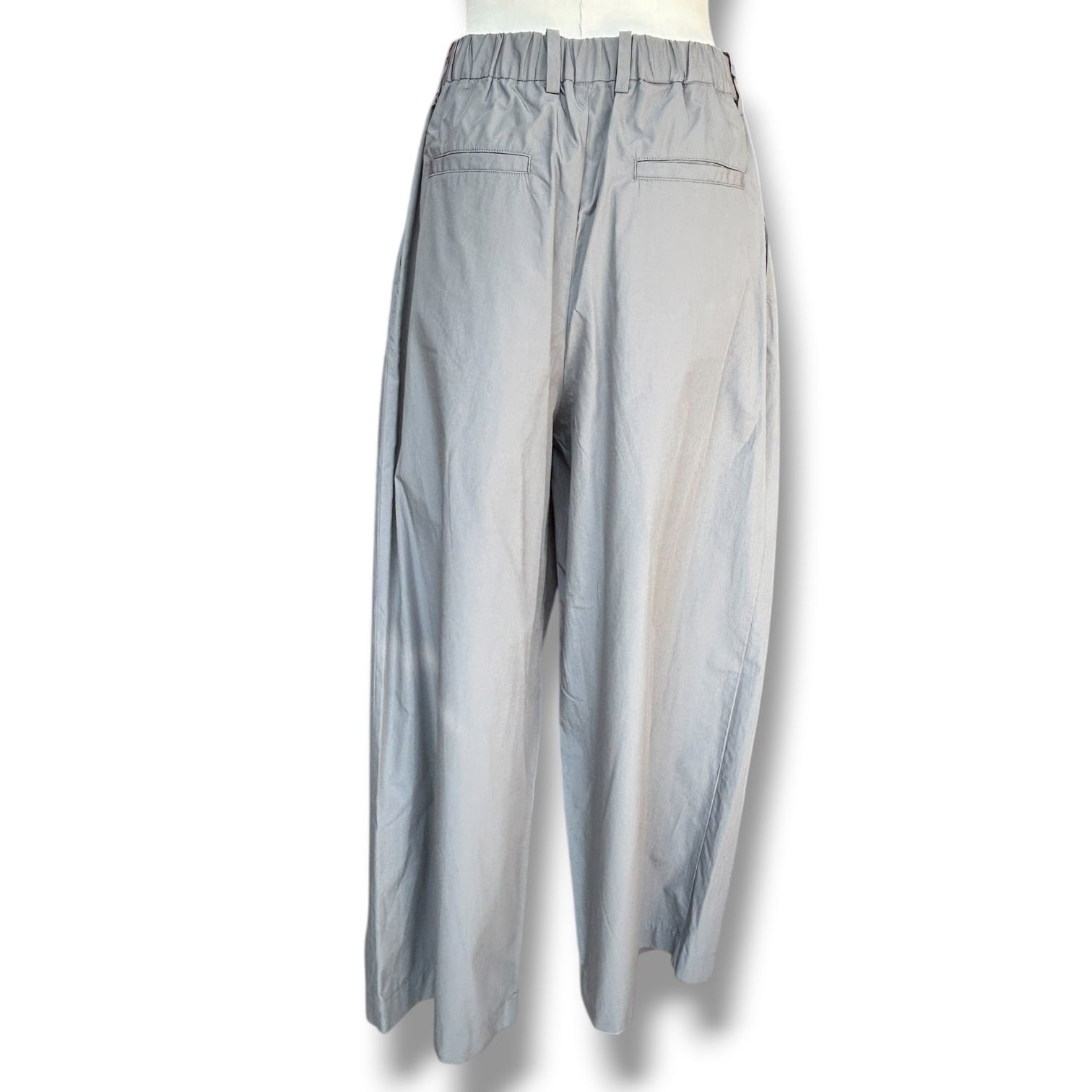 上質なコットンの糸を高密度に織り上げたハリのあるタイプライター素材を使用しているので、立体的なシルエットが際立つツータックワイドパンツ”ルイシャム”