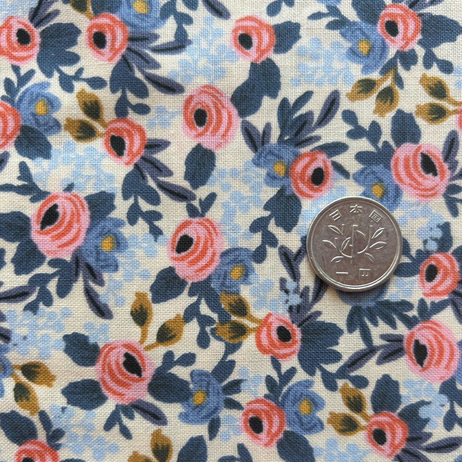 〖生地巾110cm ×15cm〗Fabric -RoseNavy【Rifle paper,co】ライフルペーパー生地