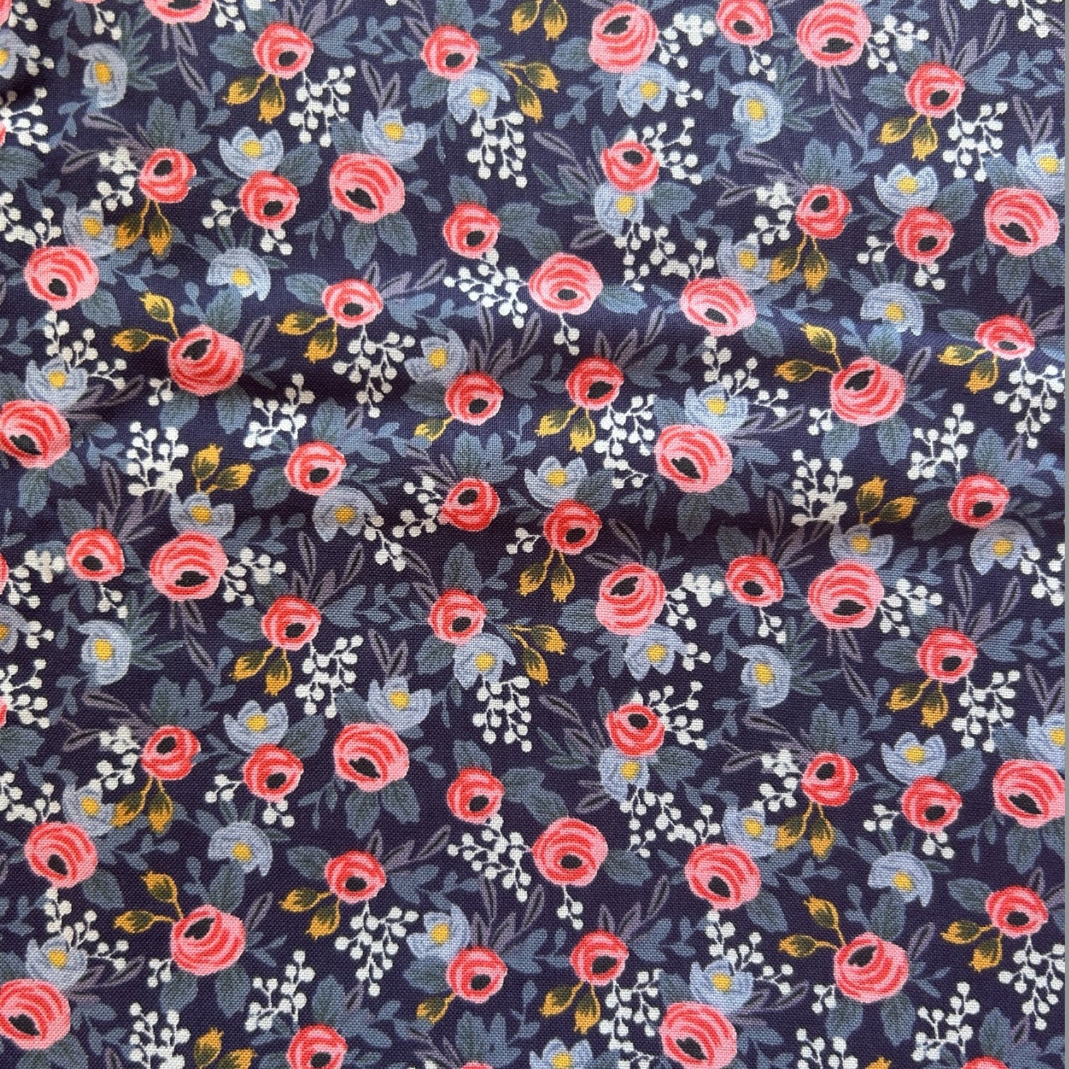 〖生地巾110cm ×40cm〗Fabric -RoseNavy【Rifle paper,co】ライフルペーパー生地