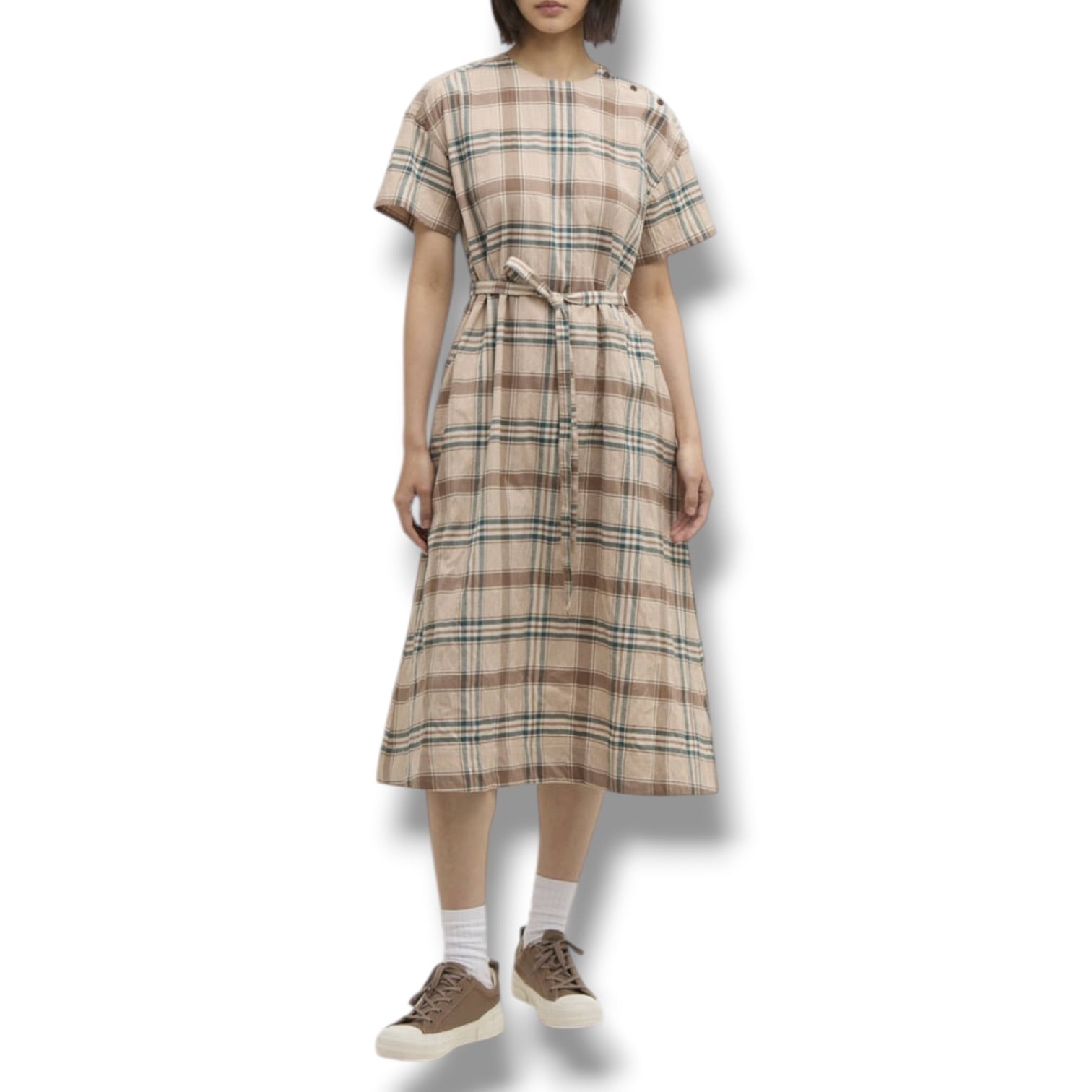 バーバーの「グウェン ミディ ドレス」は、アーカイブのタータンチェック生地を使用した