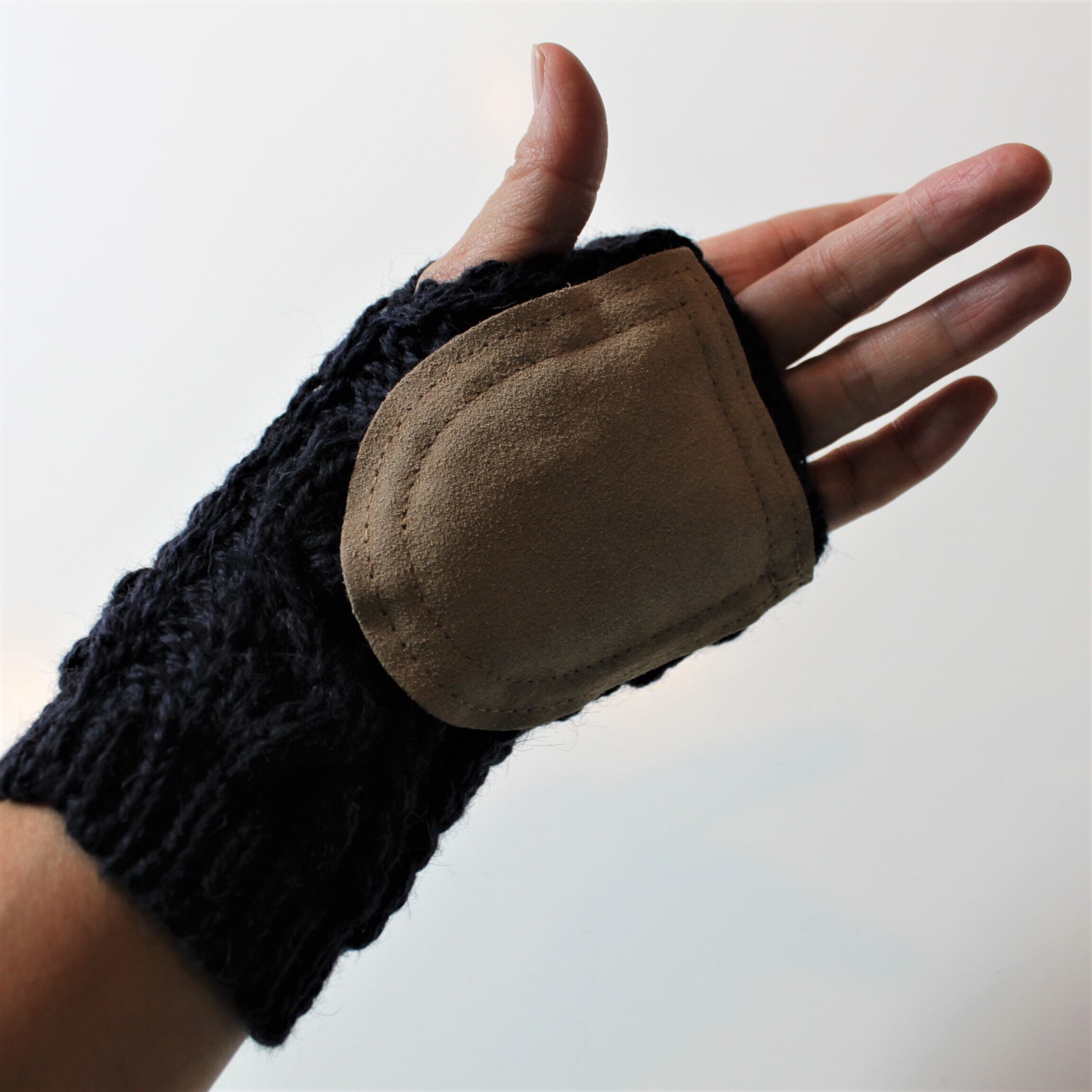 内側にはスエード生地が縫われていますので破れにくく、滑りにくい機能的なミトンです。