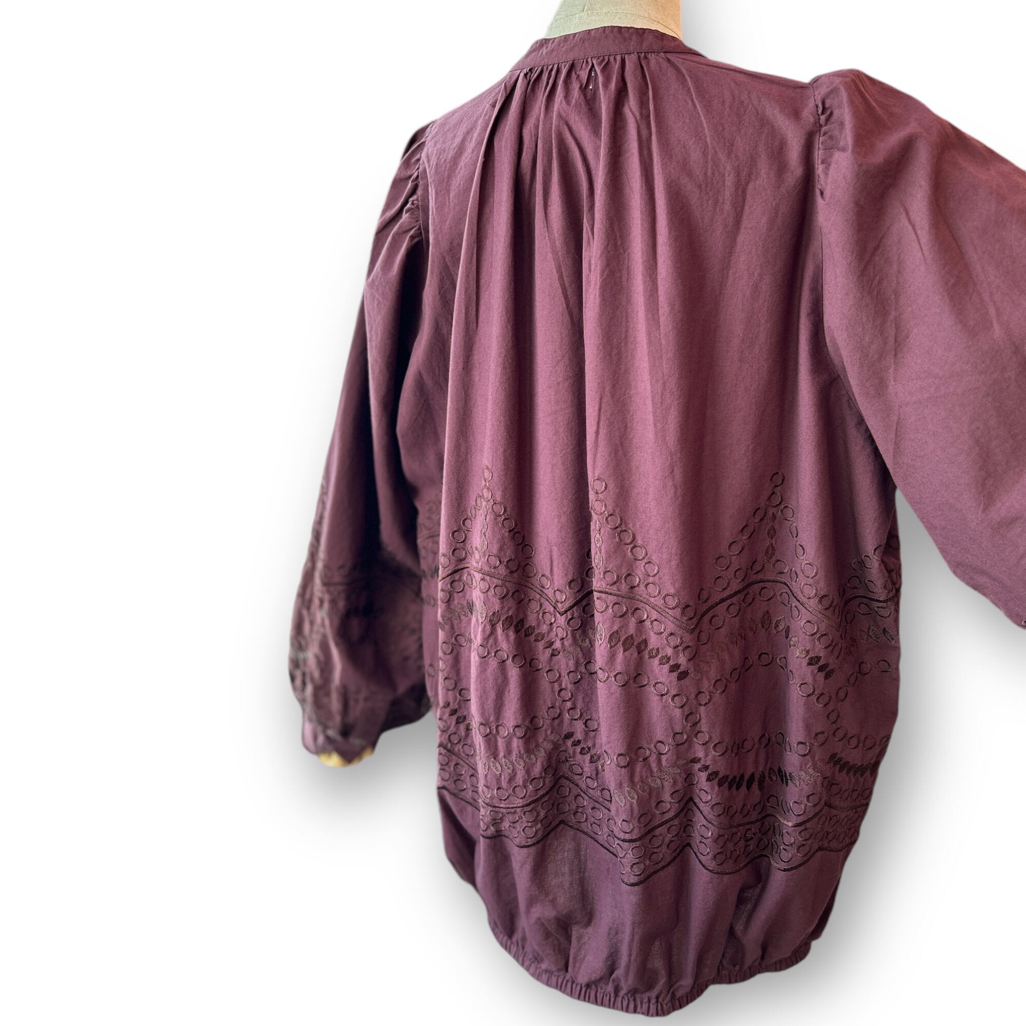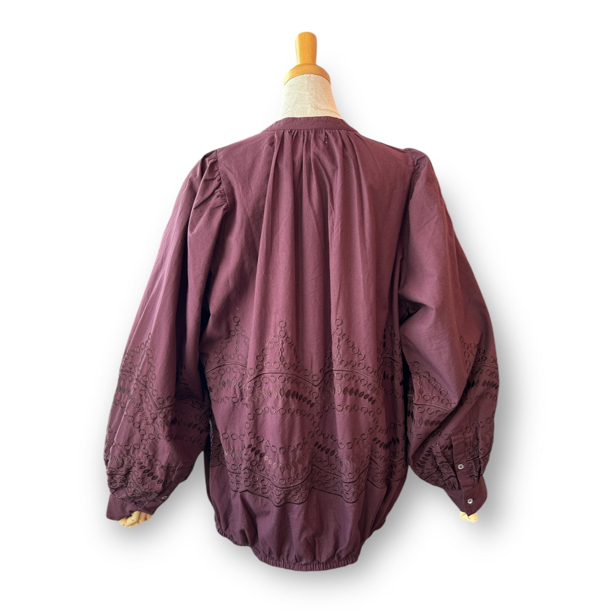 Cruneck Embroidery Baloon sleeveBlouse〖IKITSUKE〗-Bordeaux クリューネック刺繍バルーンスリーブ ブラウス イキツケ