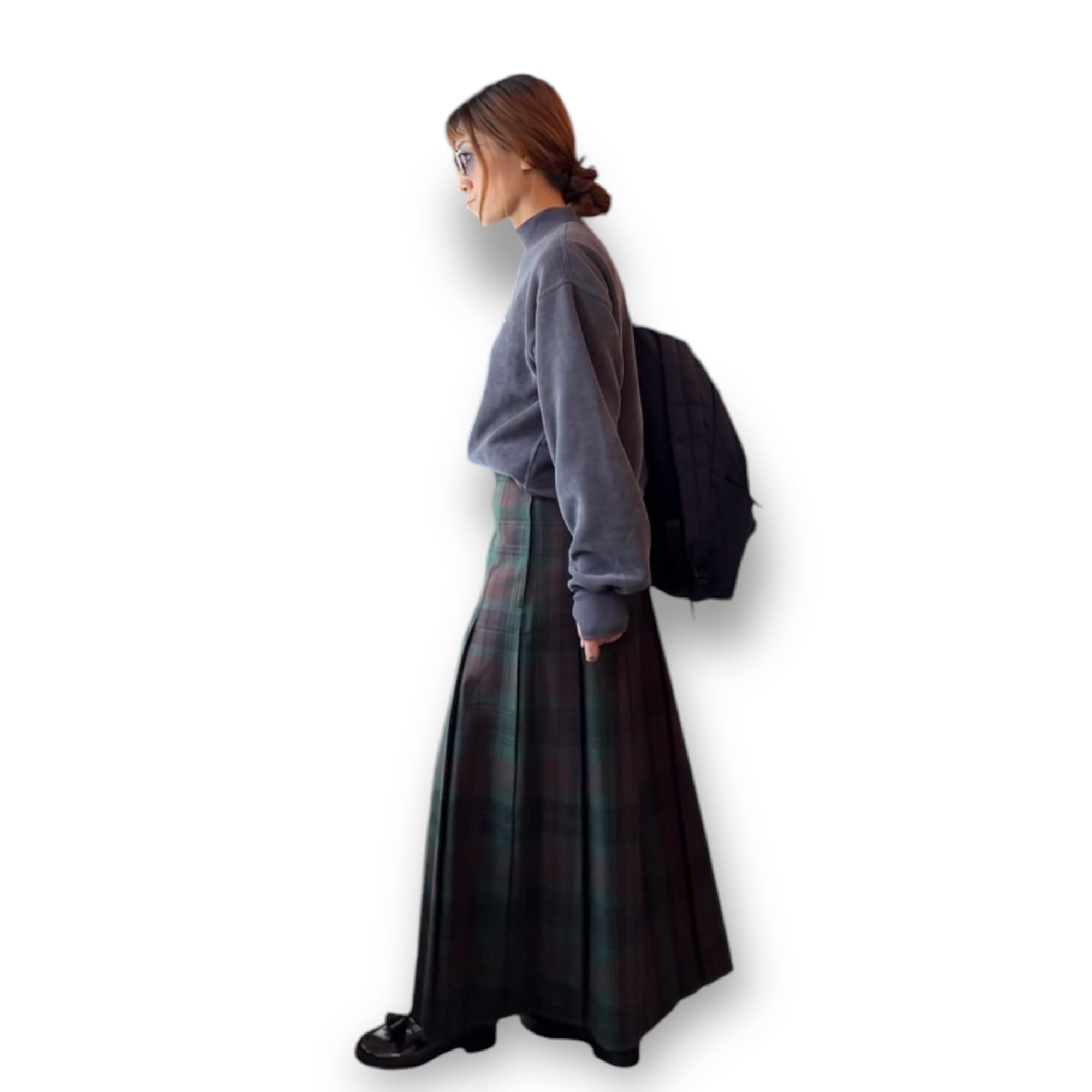 Women's SKIRLAUGH-グリーンブラウンチェック〖Traditional weatherwear〗 スカーロ― トラディショナルウェザーウエア