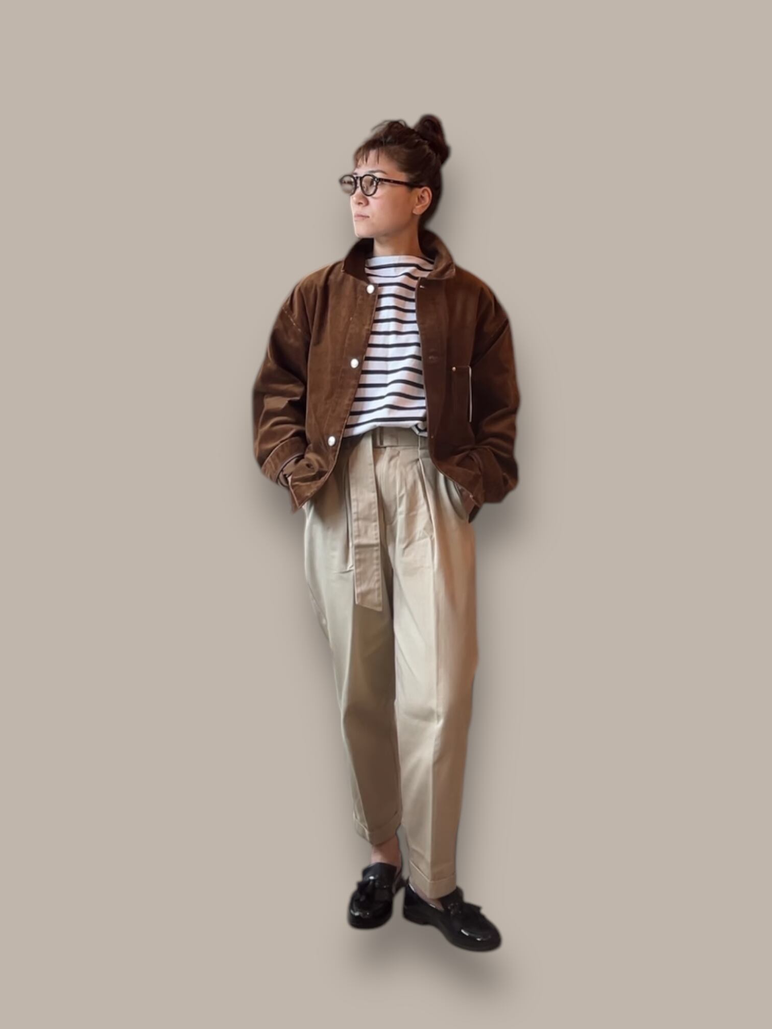 コーデュロイでも柔らかく、軽い着心地の素材でカジュアルダウンしたコーディネートにおすすめです。