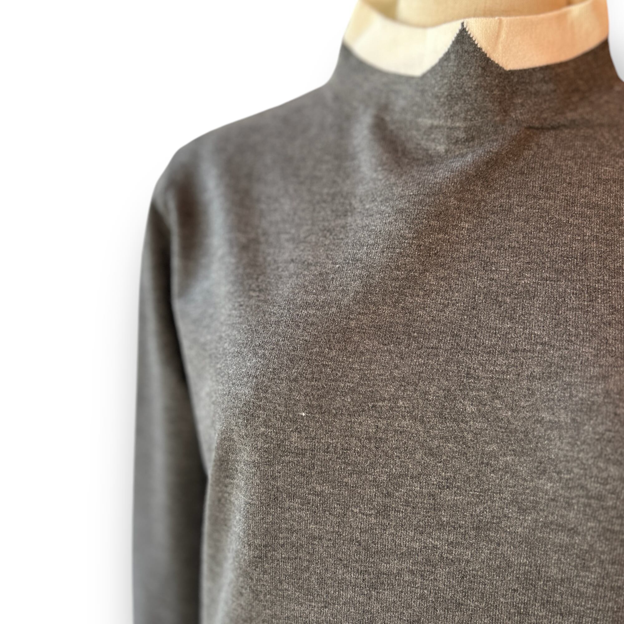 Woman's Cleric Collar Knit-Grey〖MACKINTOSH PHILOSOPHY〗セリックカラーロングスリーブ マッキントッシュフィロソフィー