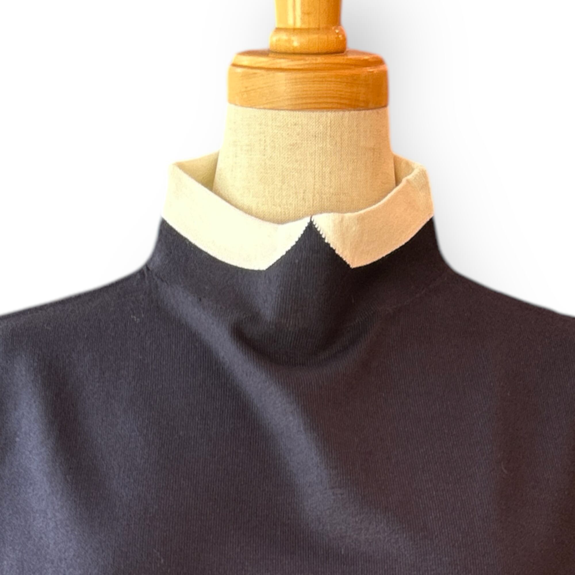 2015年登場以来、愛され続けているクレリックカラーニットは、首元の衿に見立てた切り替えが特徴。