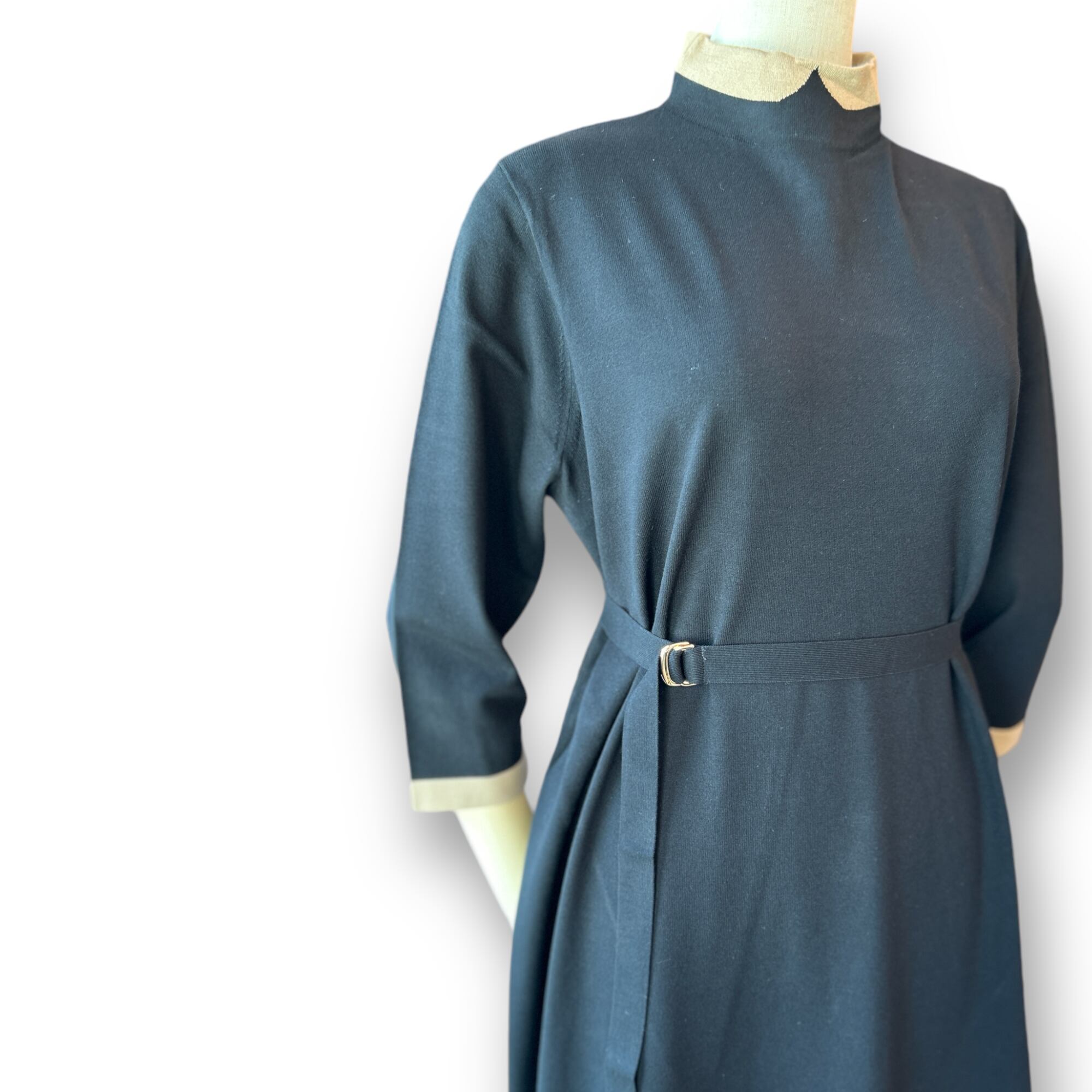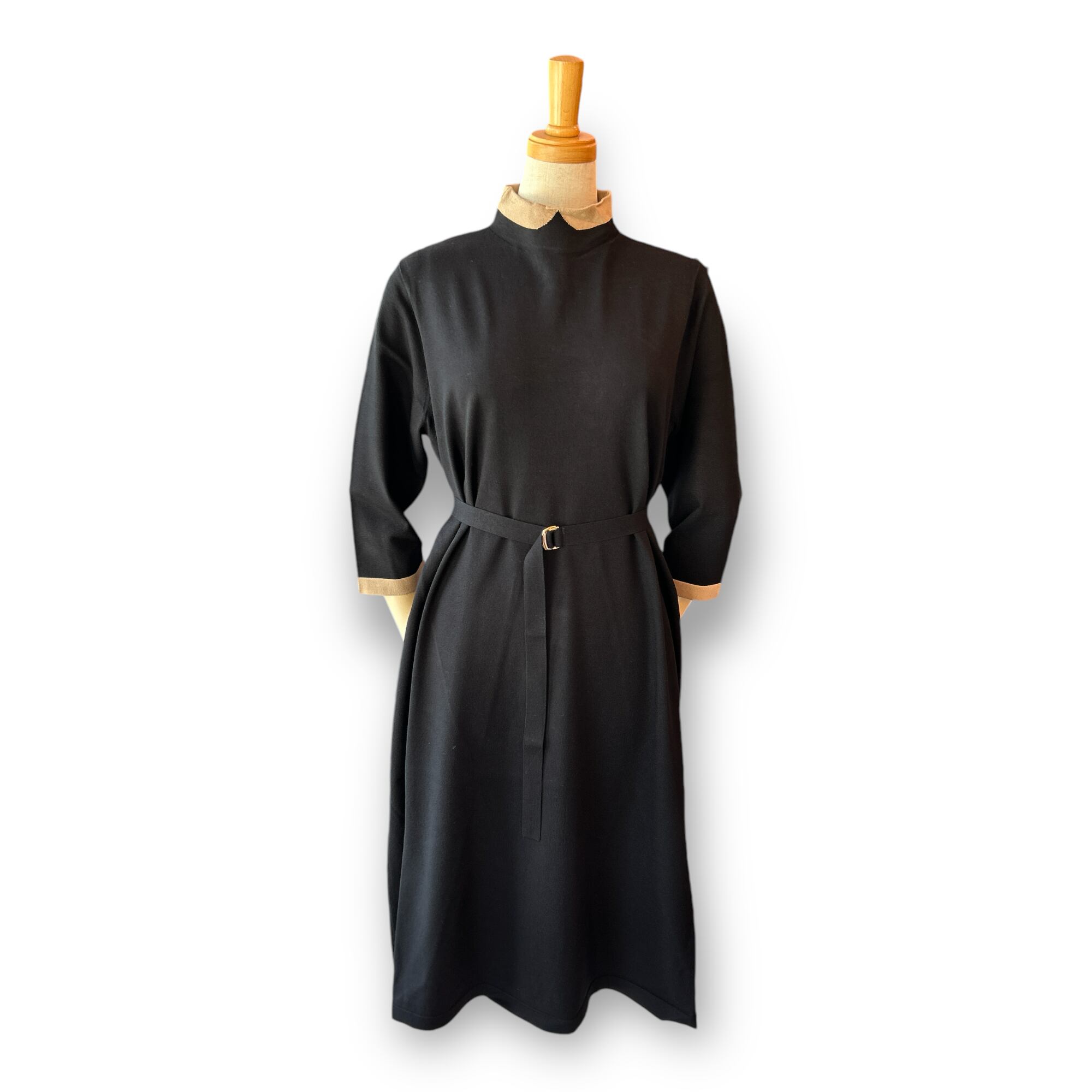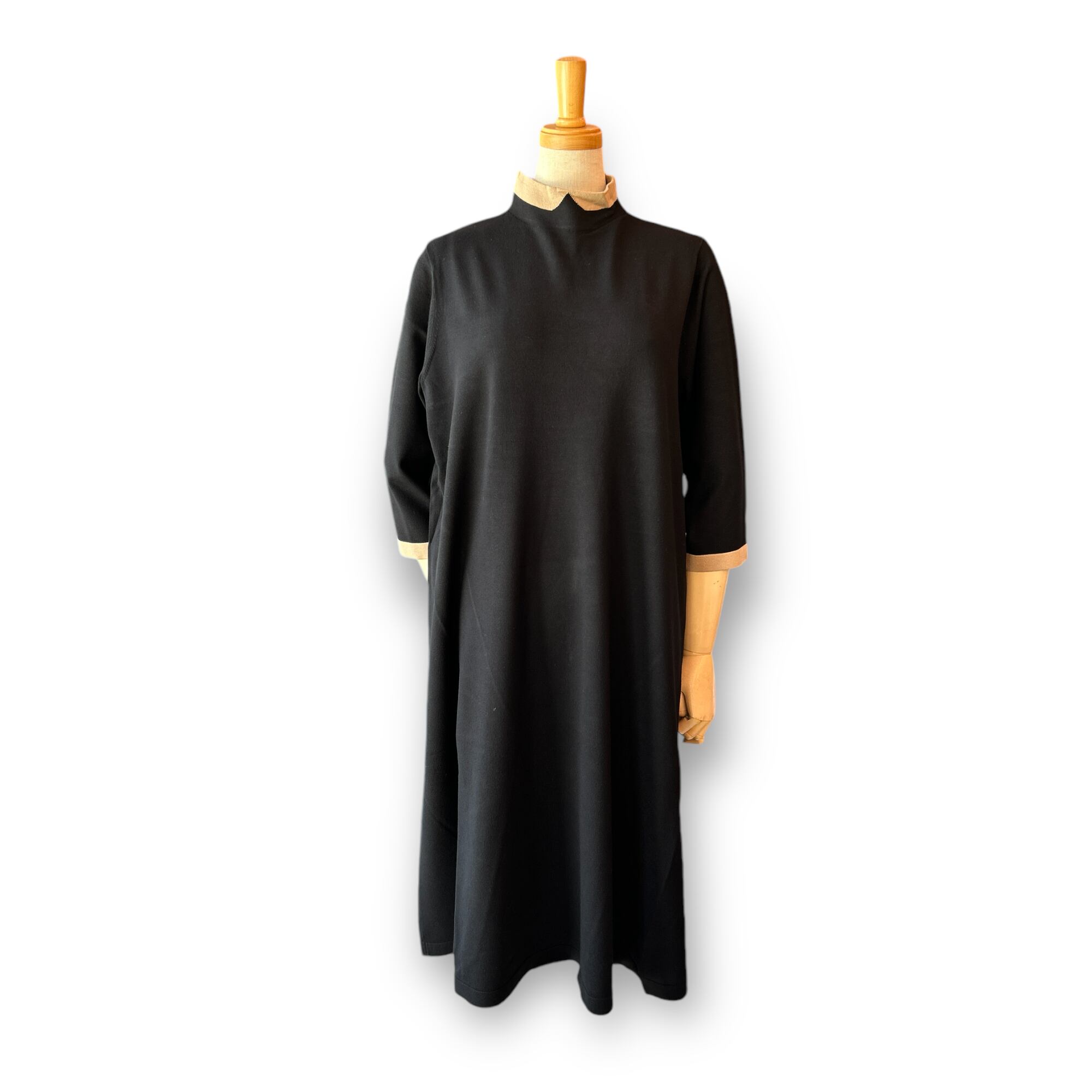Woman's Cleric Collar Knit One Piece-Black〖MACKINTOSH PHILOSOPHY〗セリックカラーワンピースロングスリーブ マッキントッシュフィロソフィー
