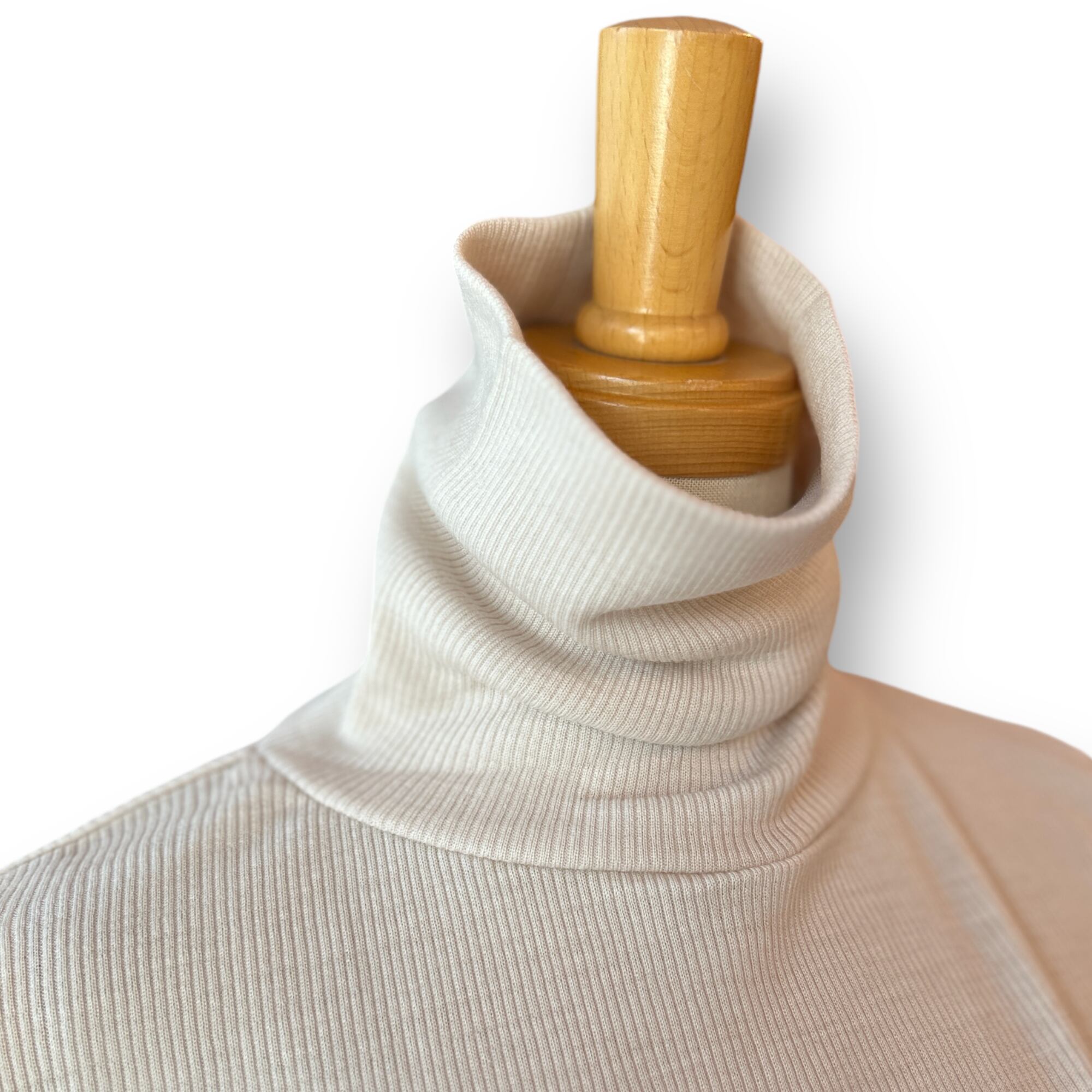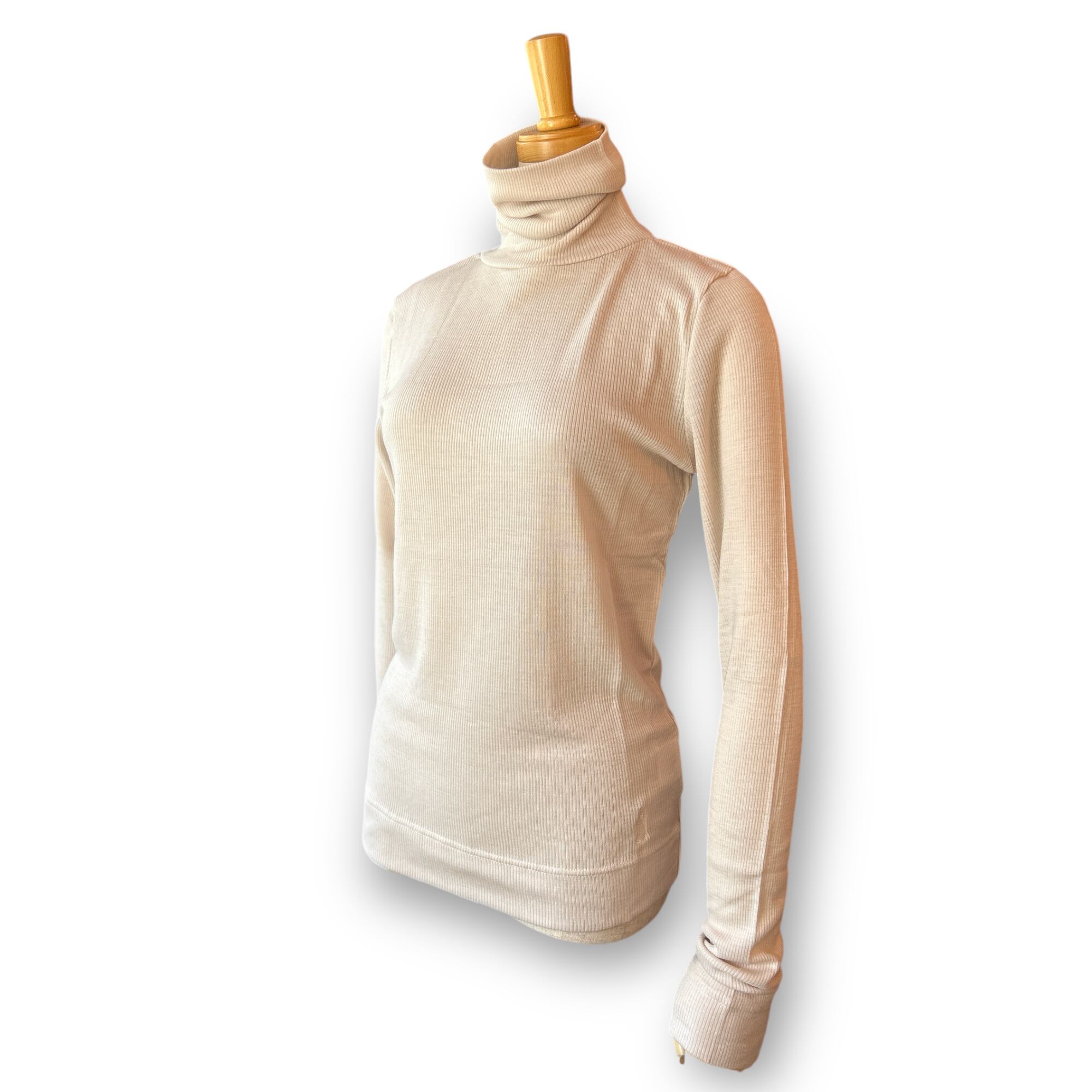 細番手のウール100%を使用したタートルニットトップ。