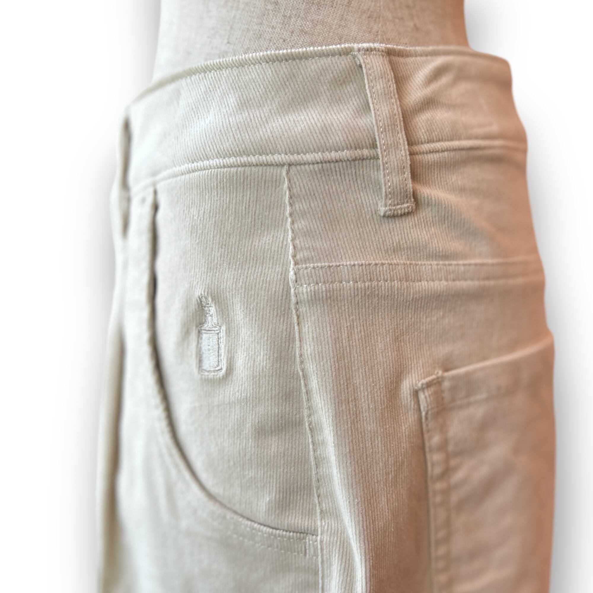 コーデュロイの持つ厚手の重たい着心地を払拭し、軽く、柔軟性に優れ、美脚シルエットを兼ね備えたパンツです。