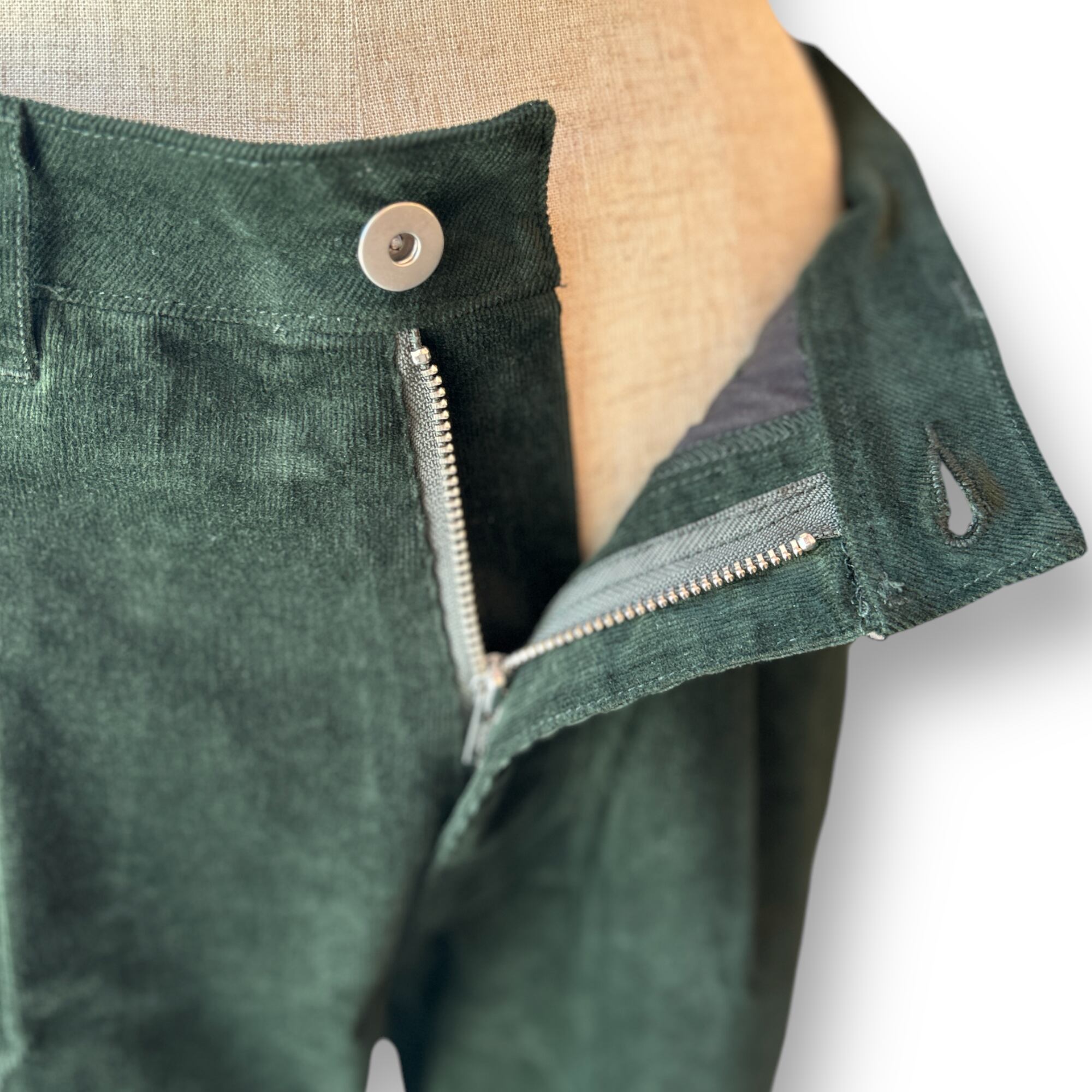 コーデュロイの持つ厚手の重たい着心地を払拭し、軽く、柔軟性に優れ、美脚シルエットを兼ね備えたパンツです。